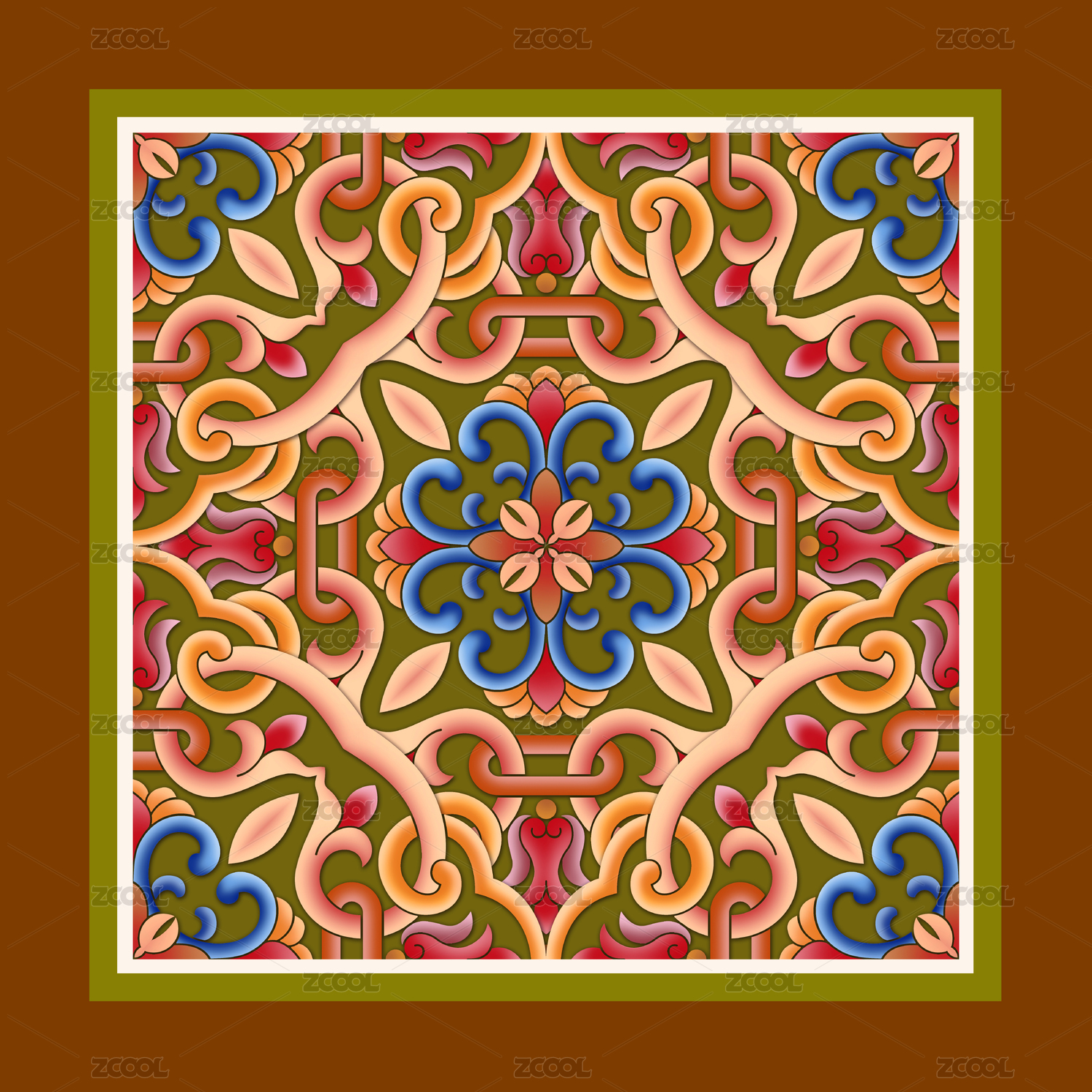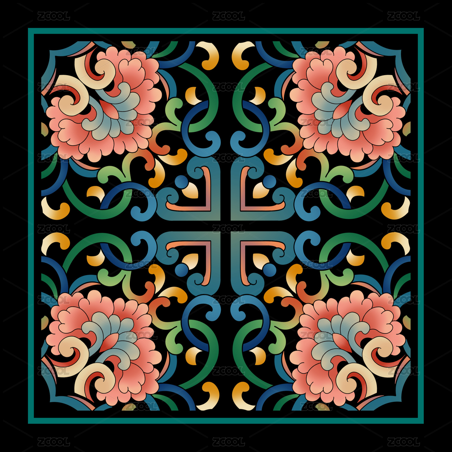 敦煌纹样四方连续图案无缝纹理图手账贴纸