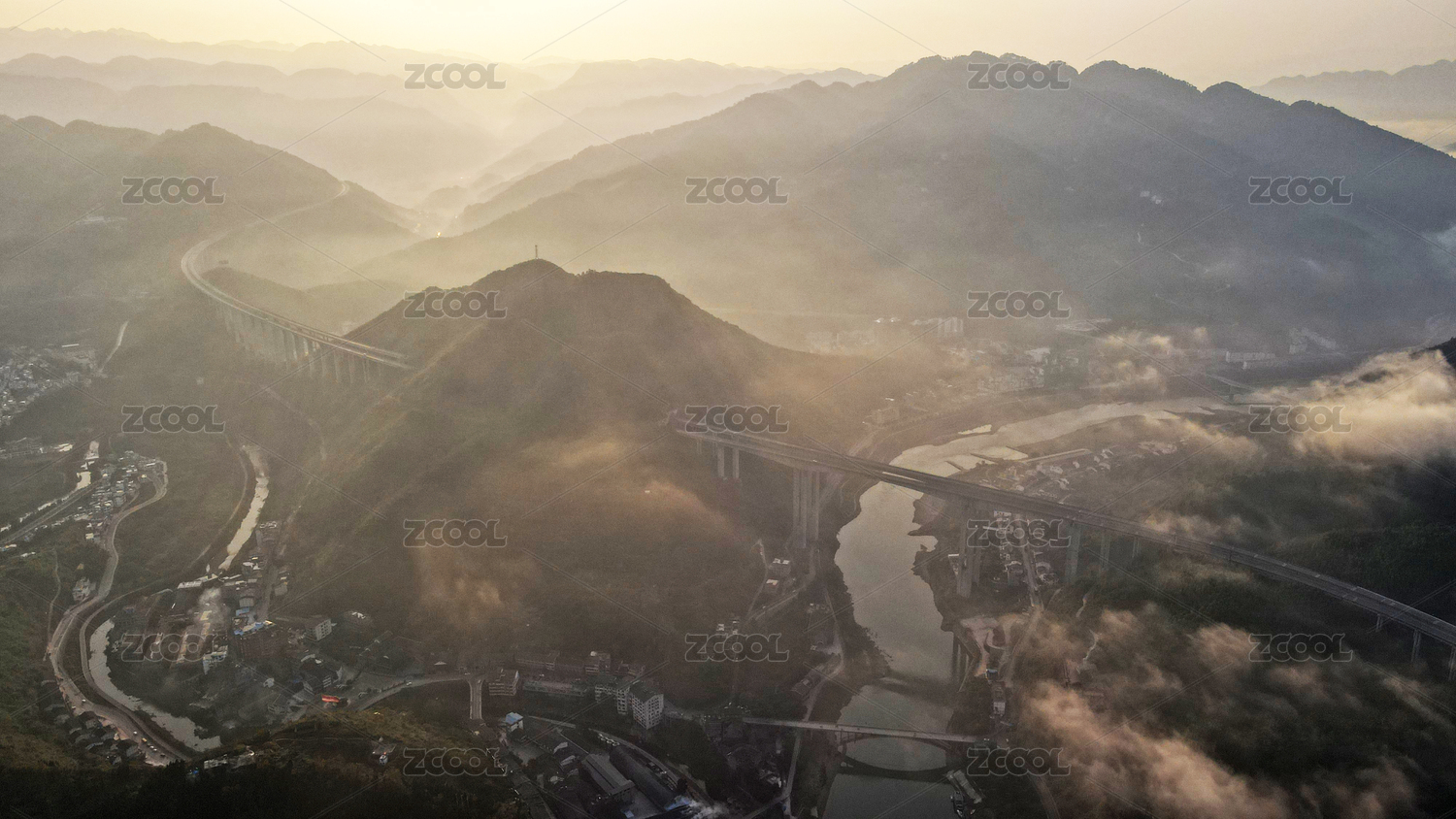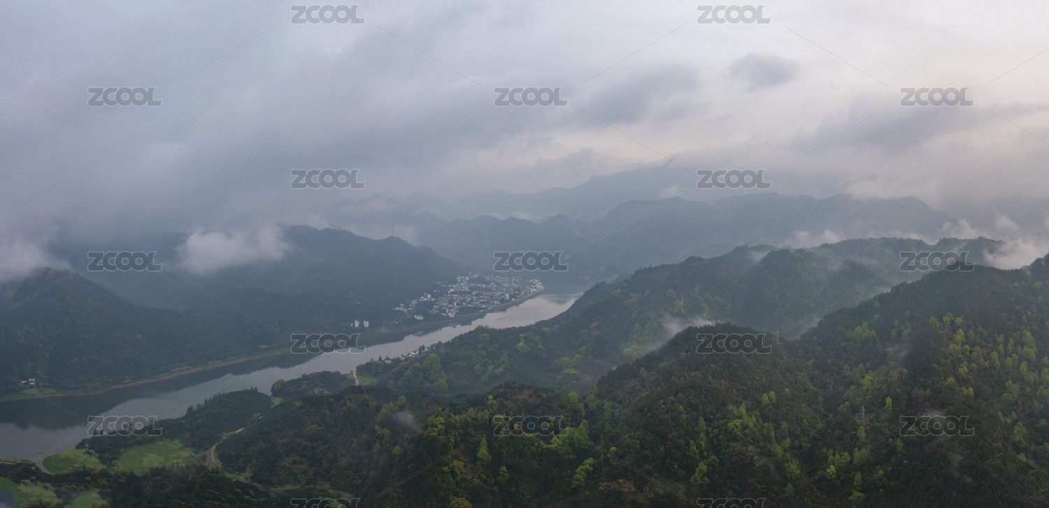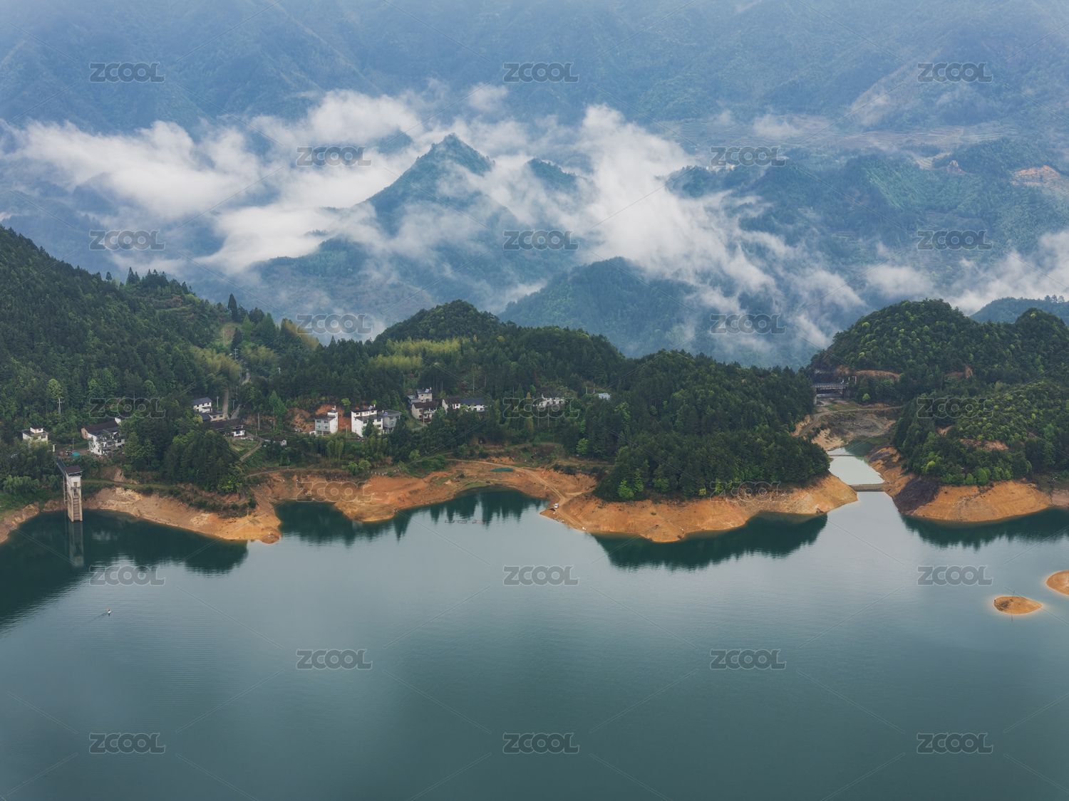 中国广西蒙山县茶山湖风景区云雾缭绕