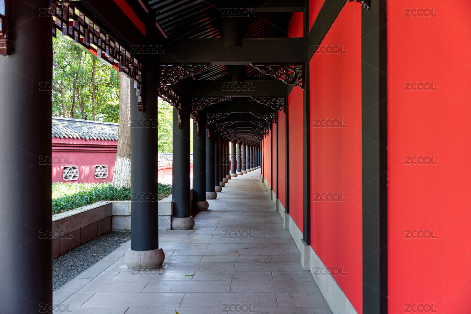 中国广东省广州市莲花山风景区莲华禅寺走廊