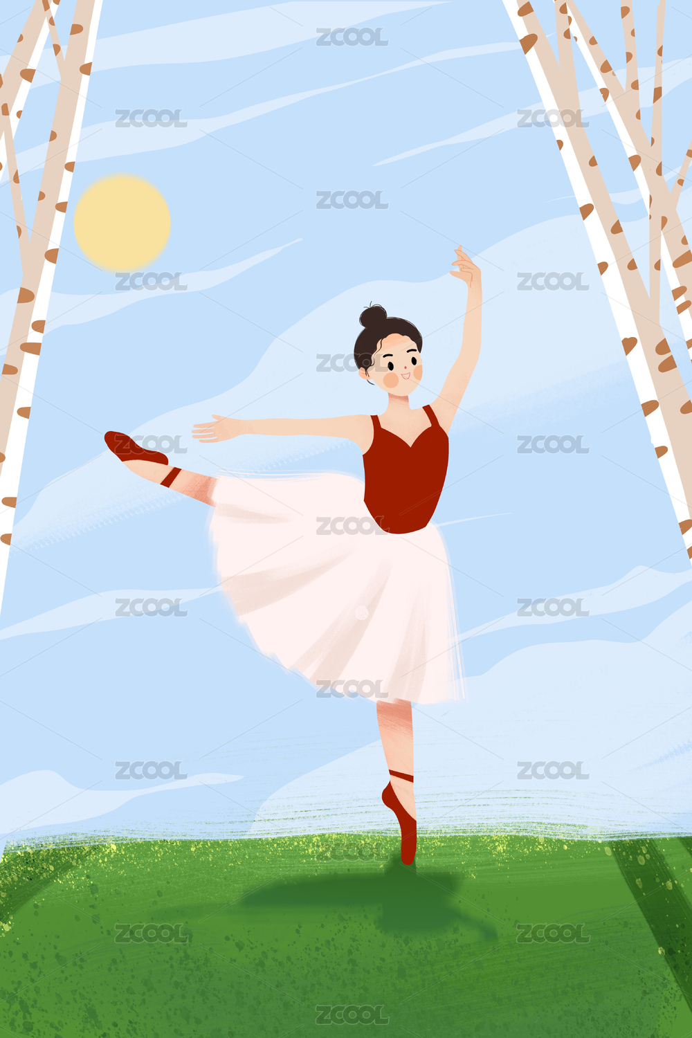 星空下跳芭蕾舞的女孩插画