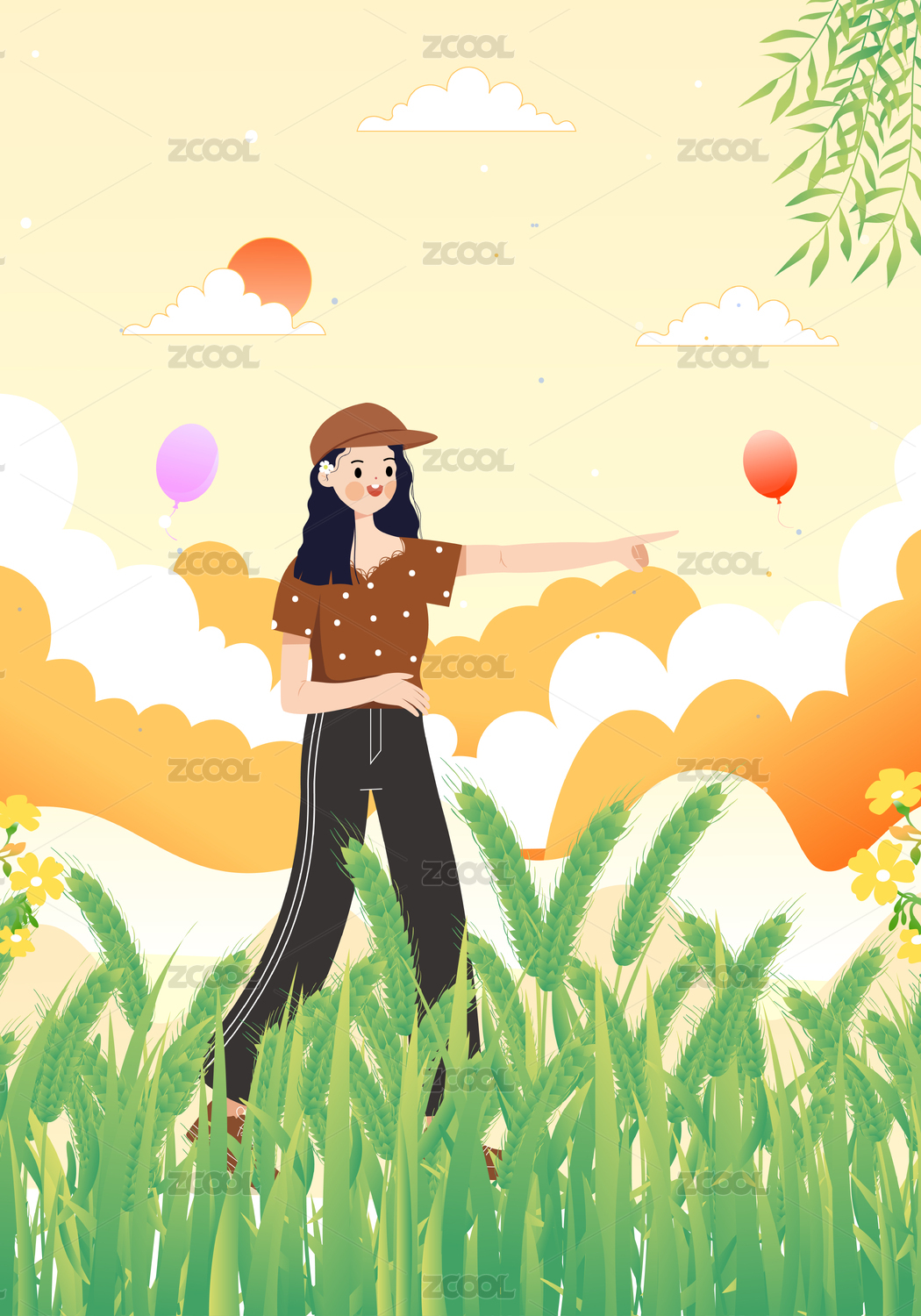 插画,插图,女生,女孩,绿色,食物,矢量,元素,背景,扁平