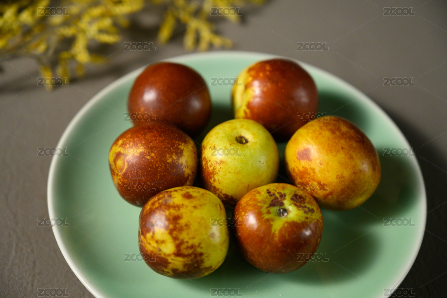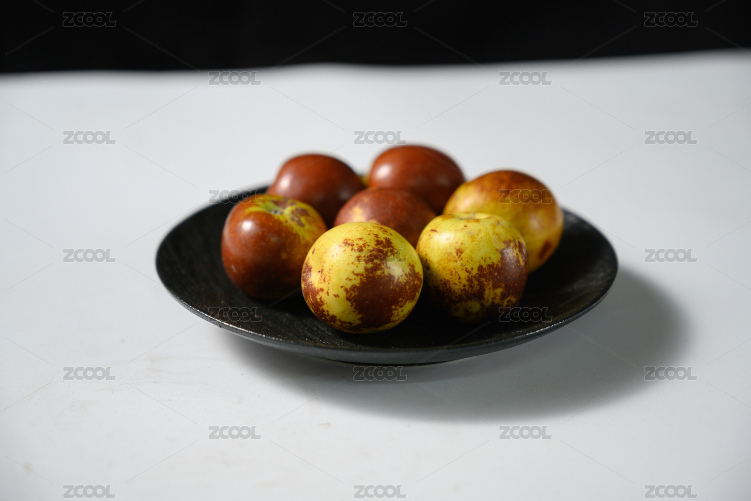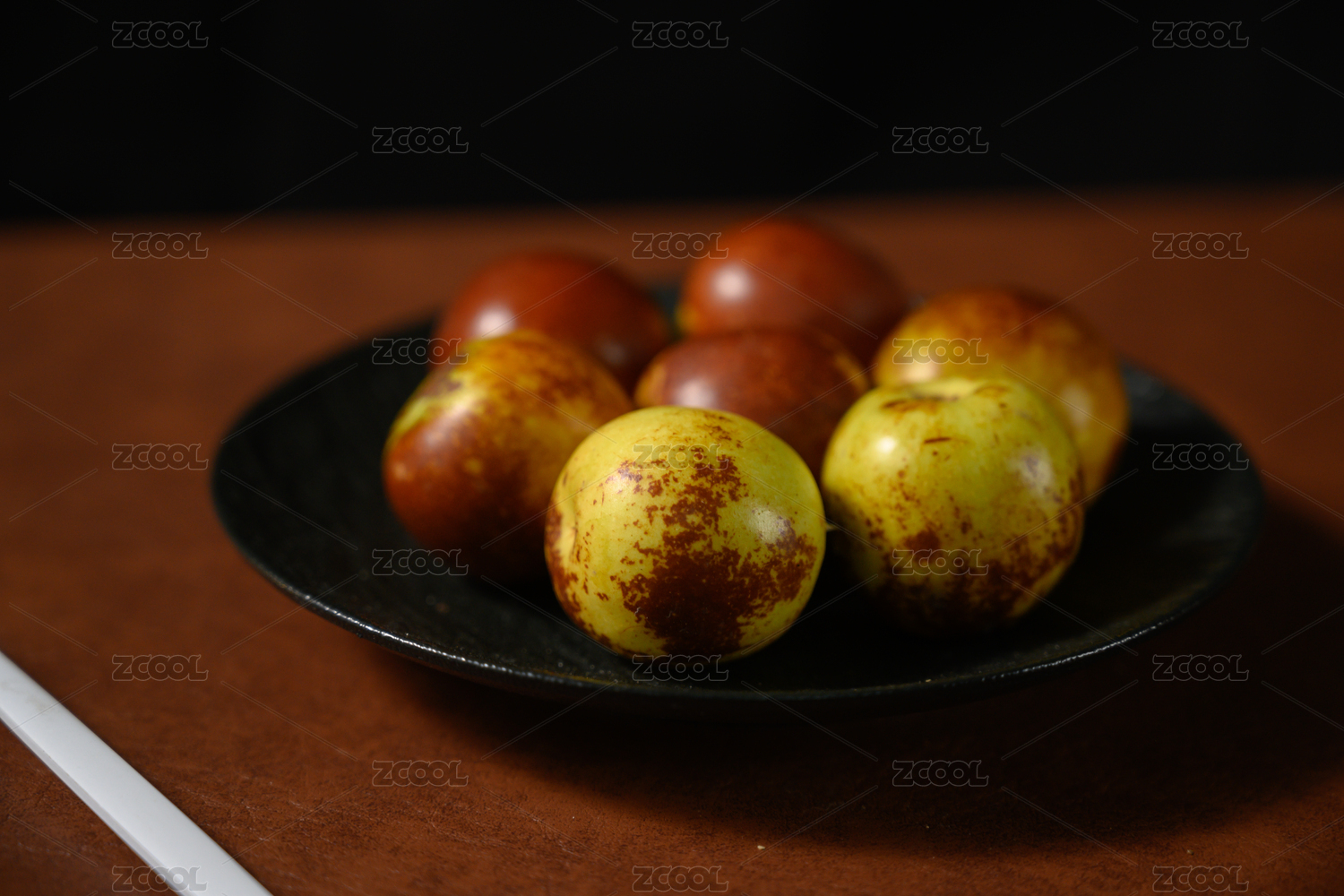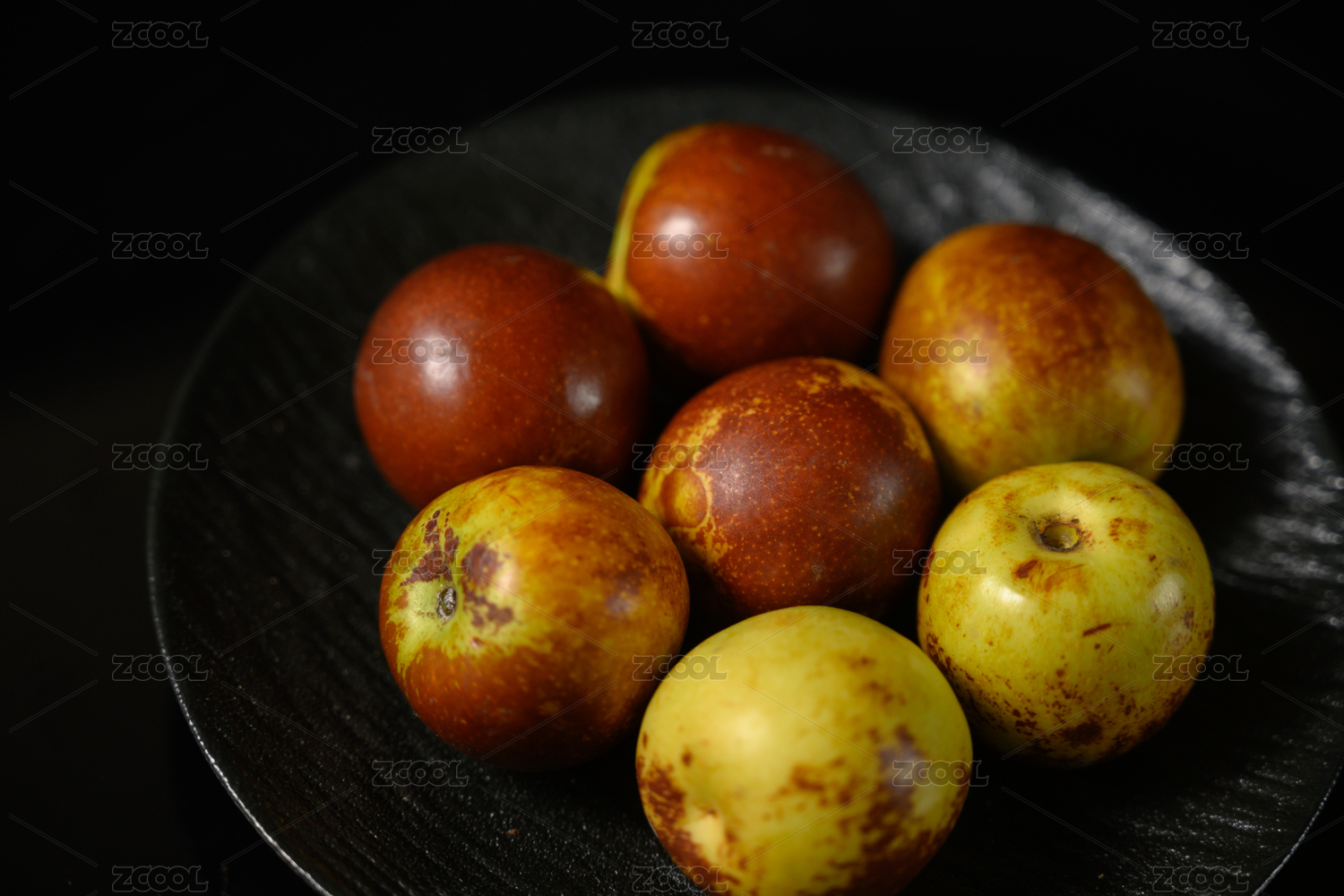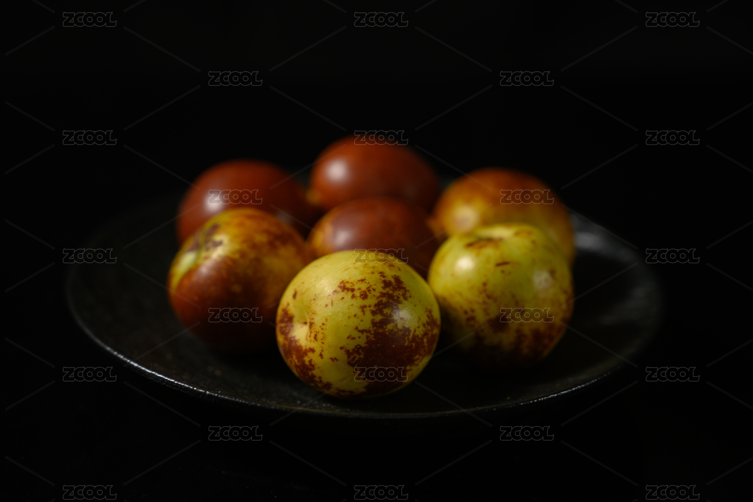 美味,冬枣,水果,盘子,新鲜,黑色背景,有机,健康,静物,滋味