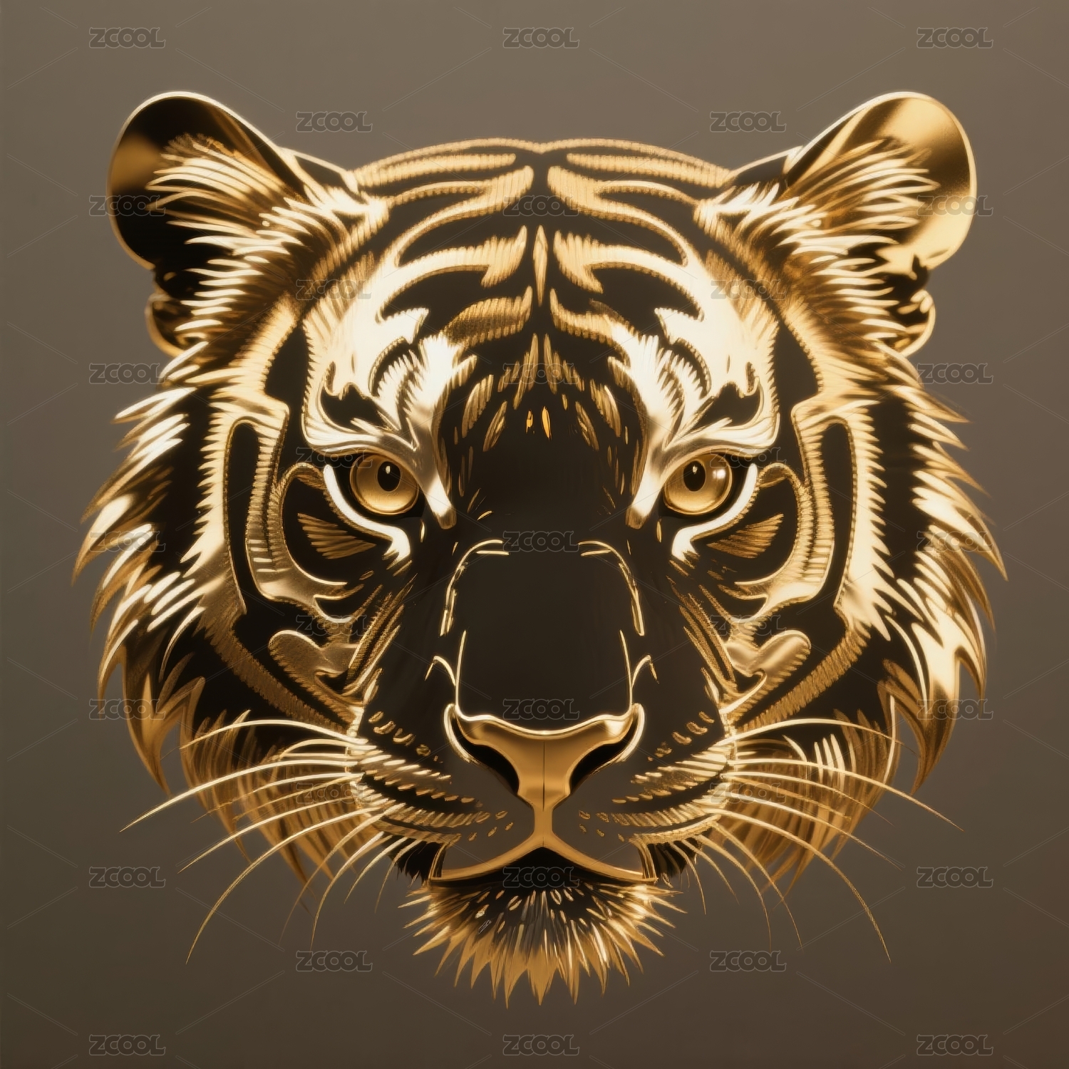 抽象线条感老虎头T恤图案美式暗黑风格插画