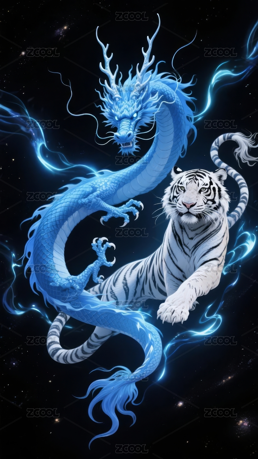 蓝龙白虎:神秘宇宙中的奇幻对决