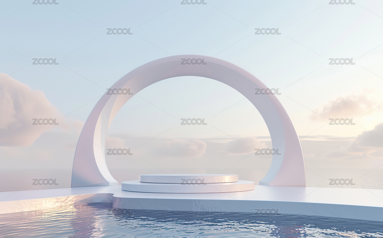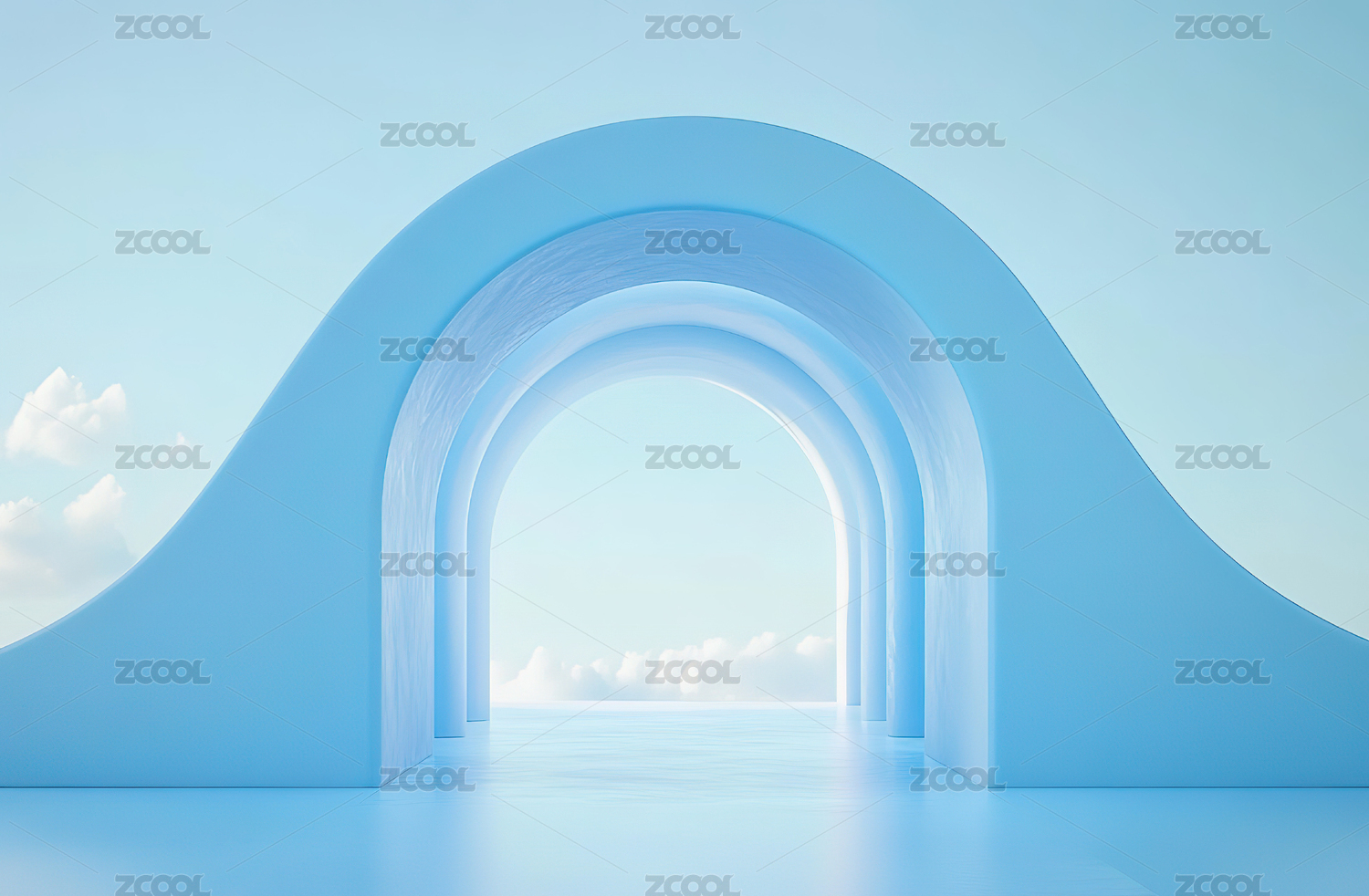 白色拱门结构与蓝天背景