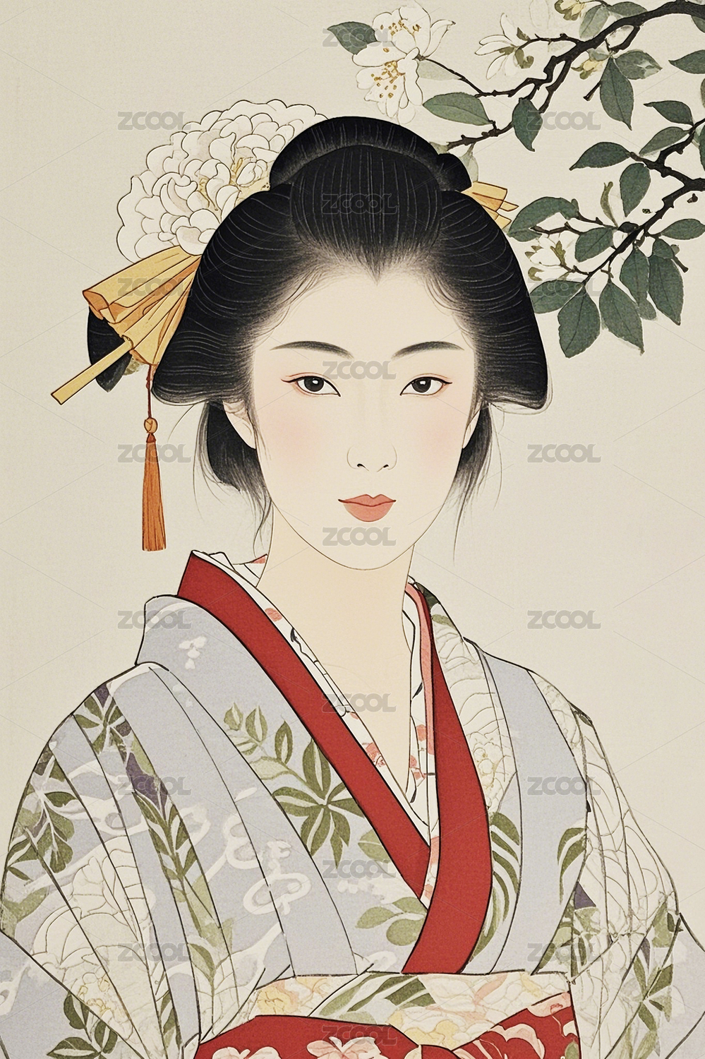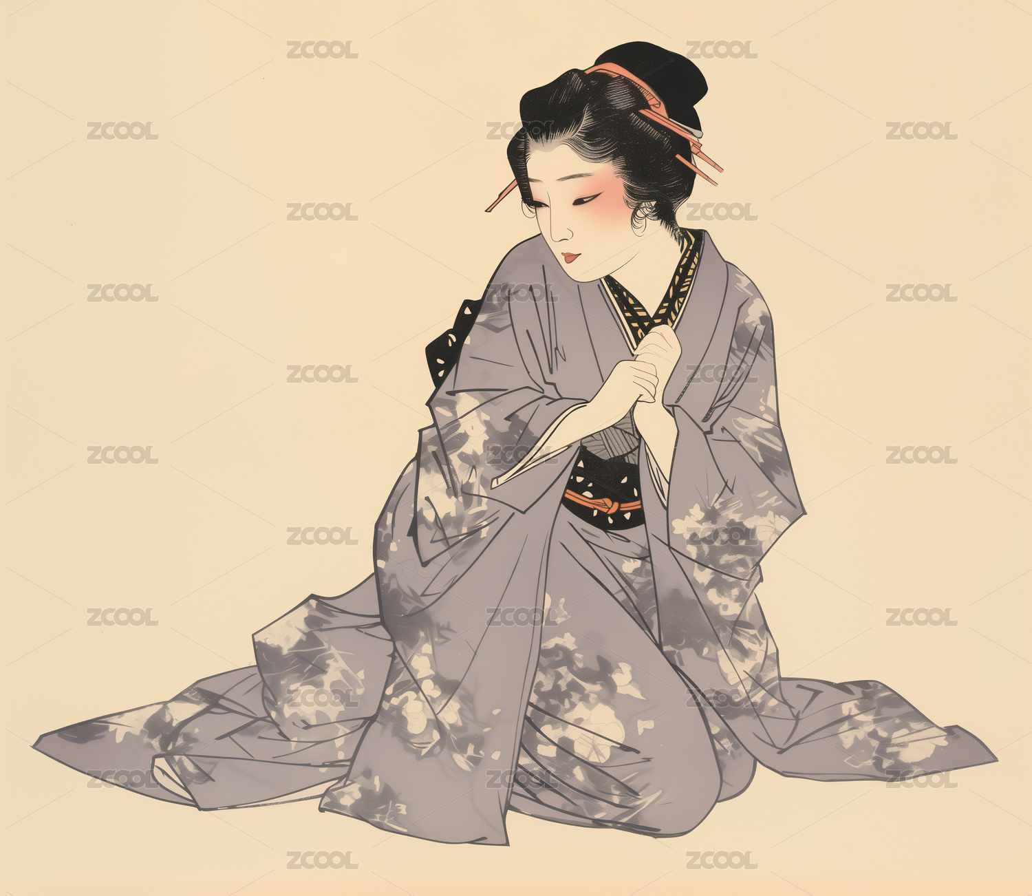 AIGCFG01,浮世绘,日漫,复古,插画,漫画,人物,和服,卡通,全身