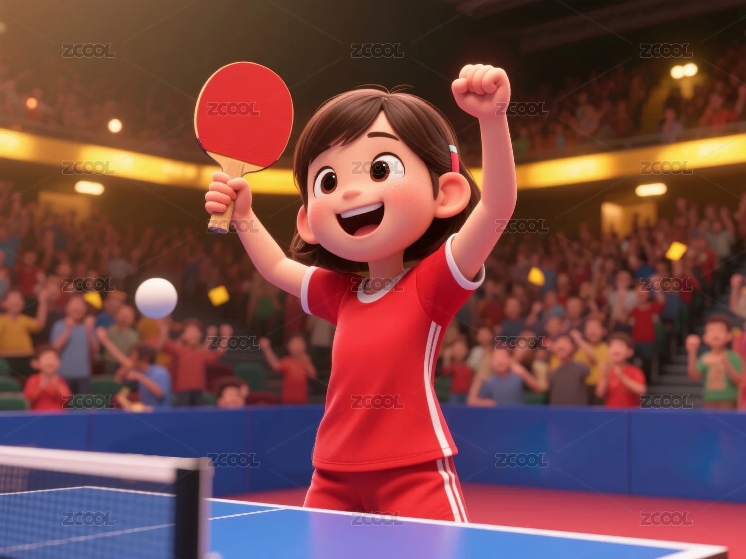乒乓女孩赛场庆祝场景