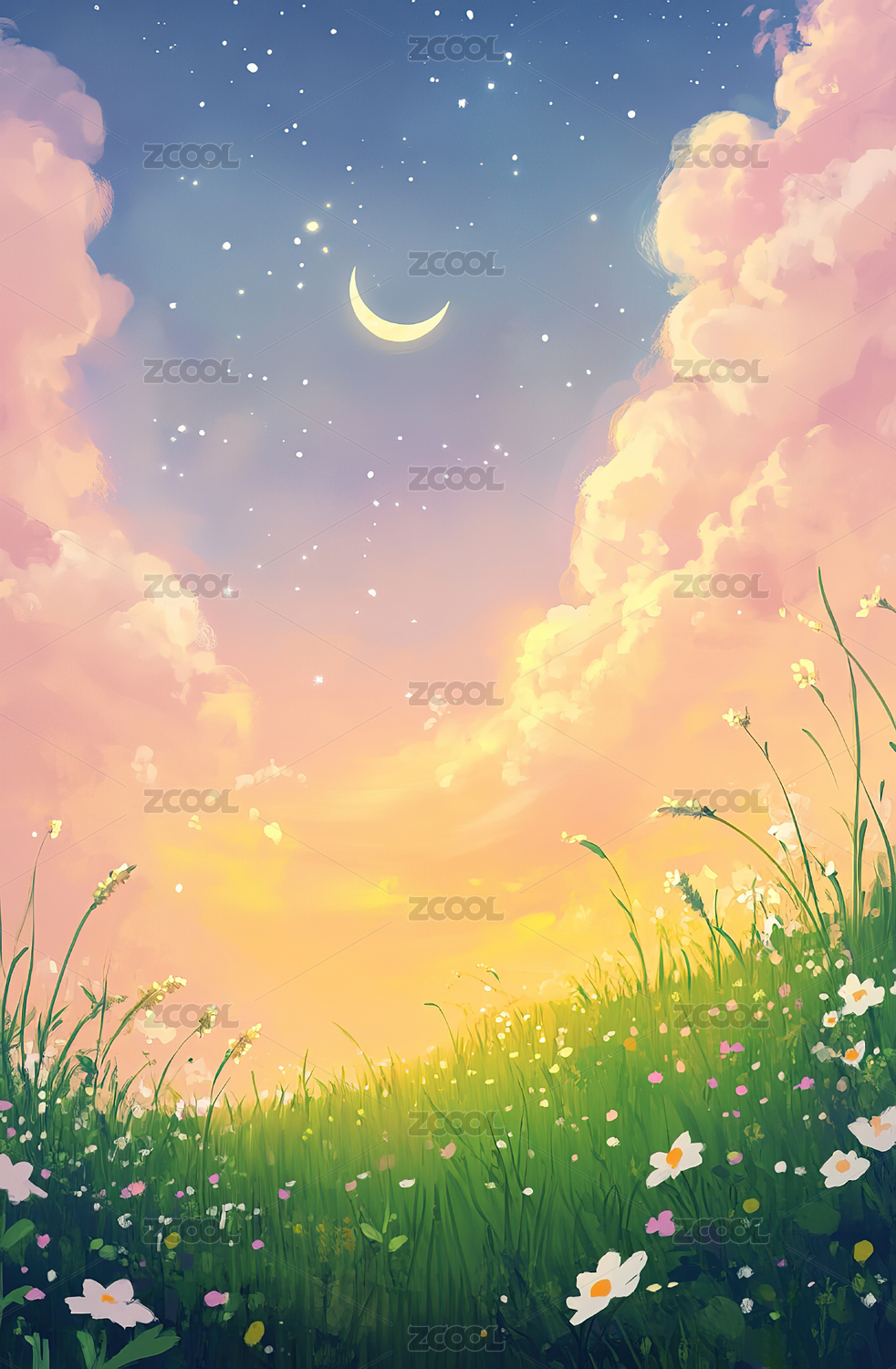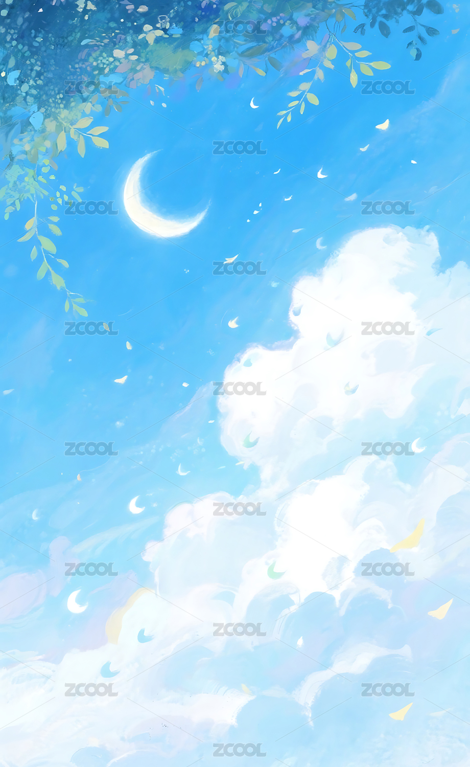 小清新天空月亮背景