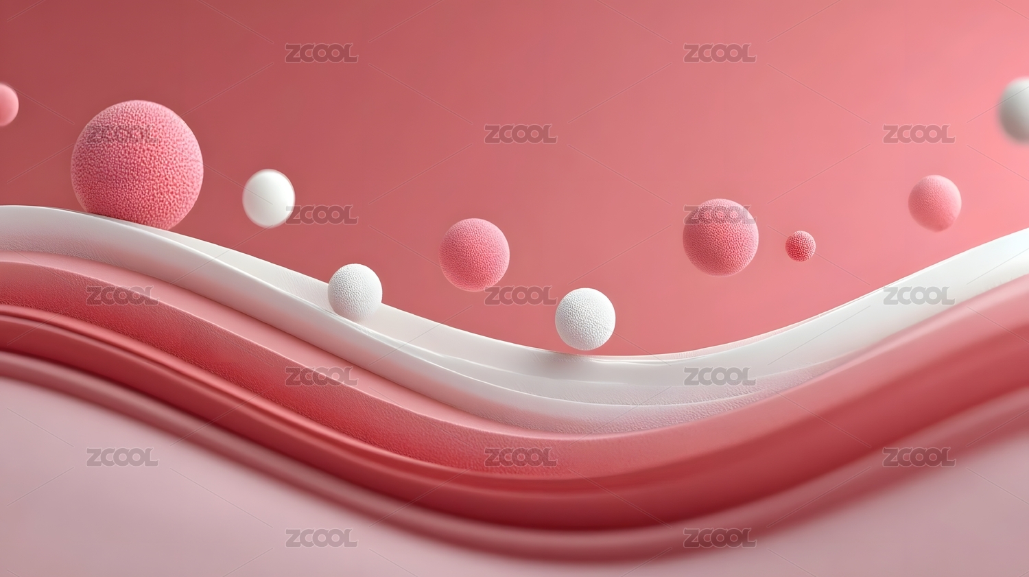 粉色波浪和透明球体构成梦幻抽象场景