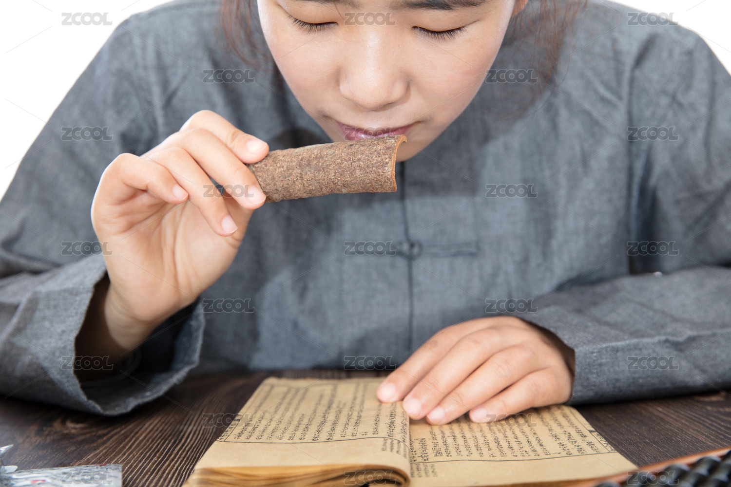年轻的中医医生一只手打着算盘另一只手拿着中药路路通观察