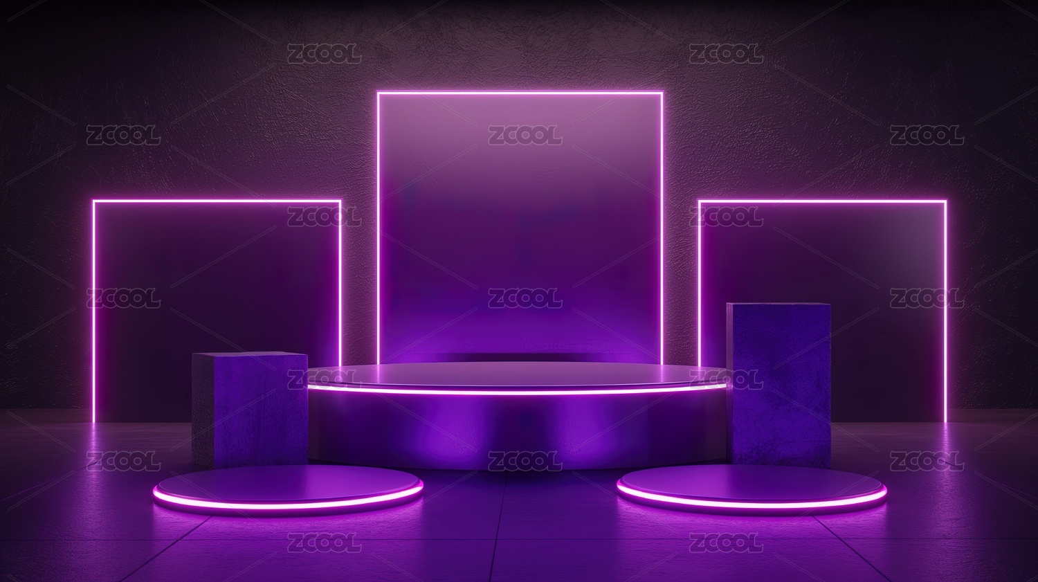 紫色发光几何产品展台
