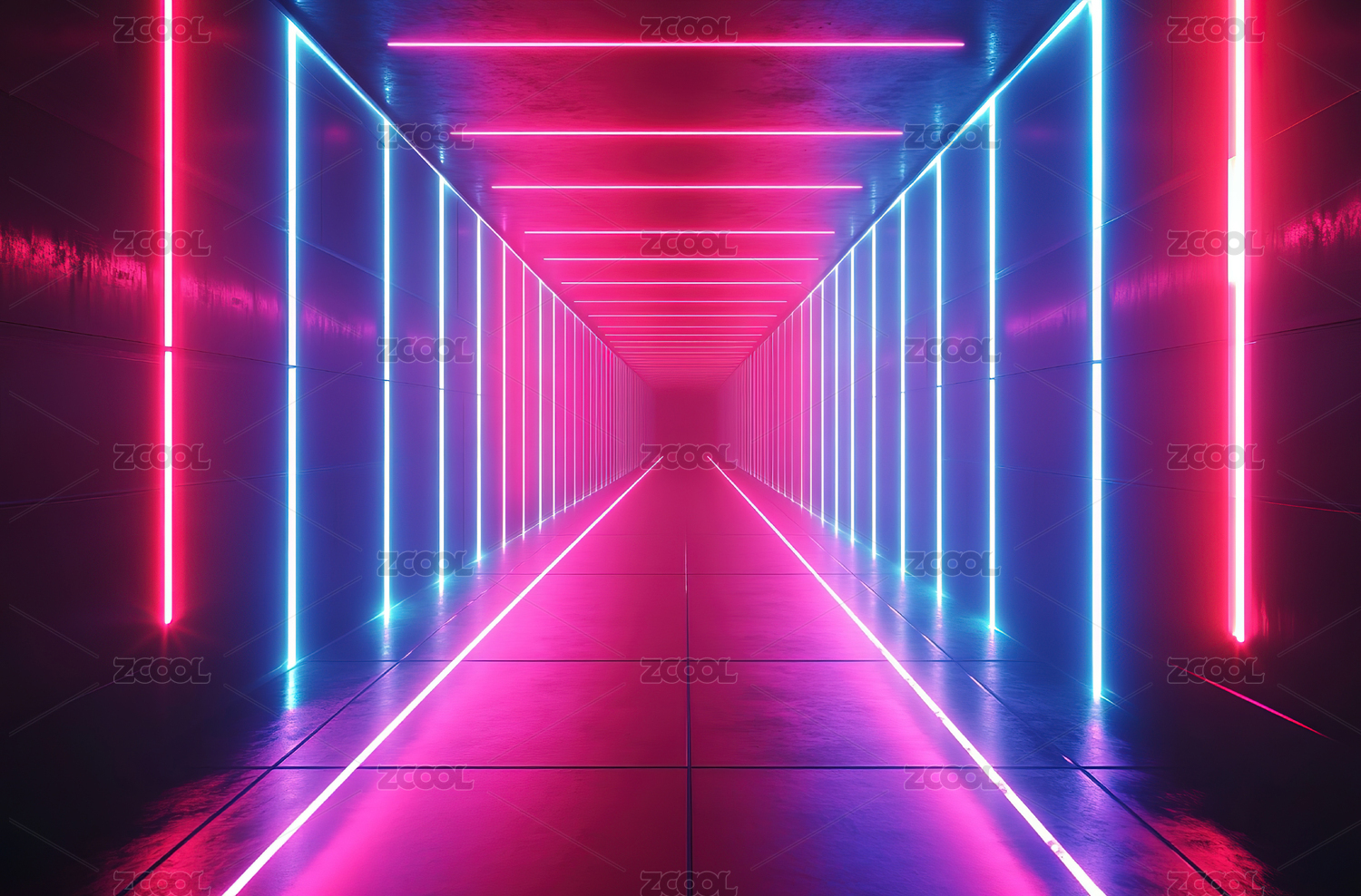 抽象科技感荧光色隧道走廊赛博朋克3D插画