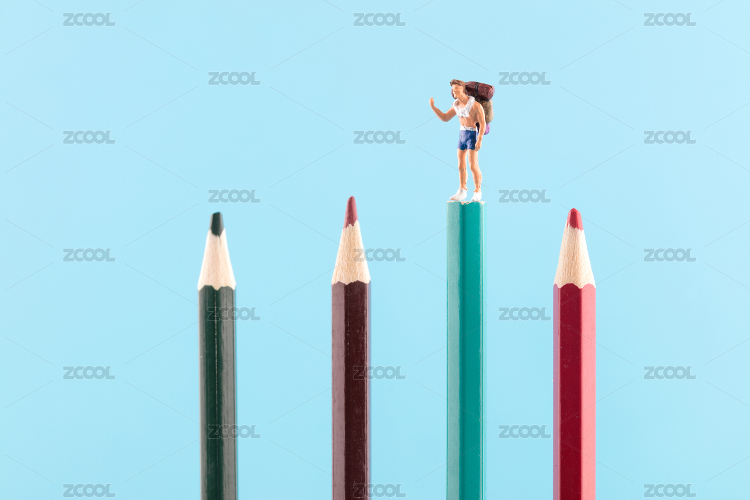 旅行者人偶站在彩铅笔顶端