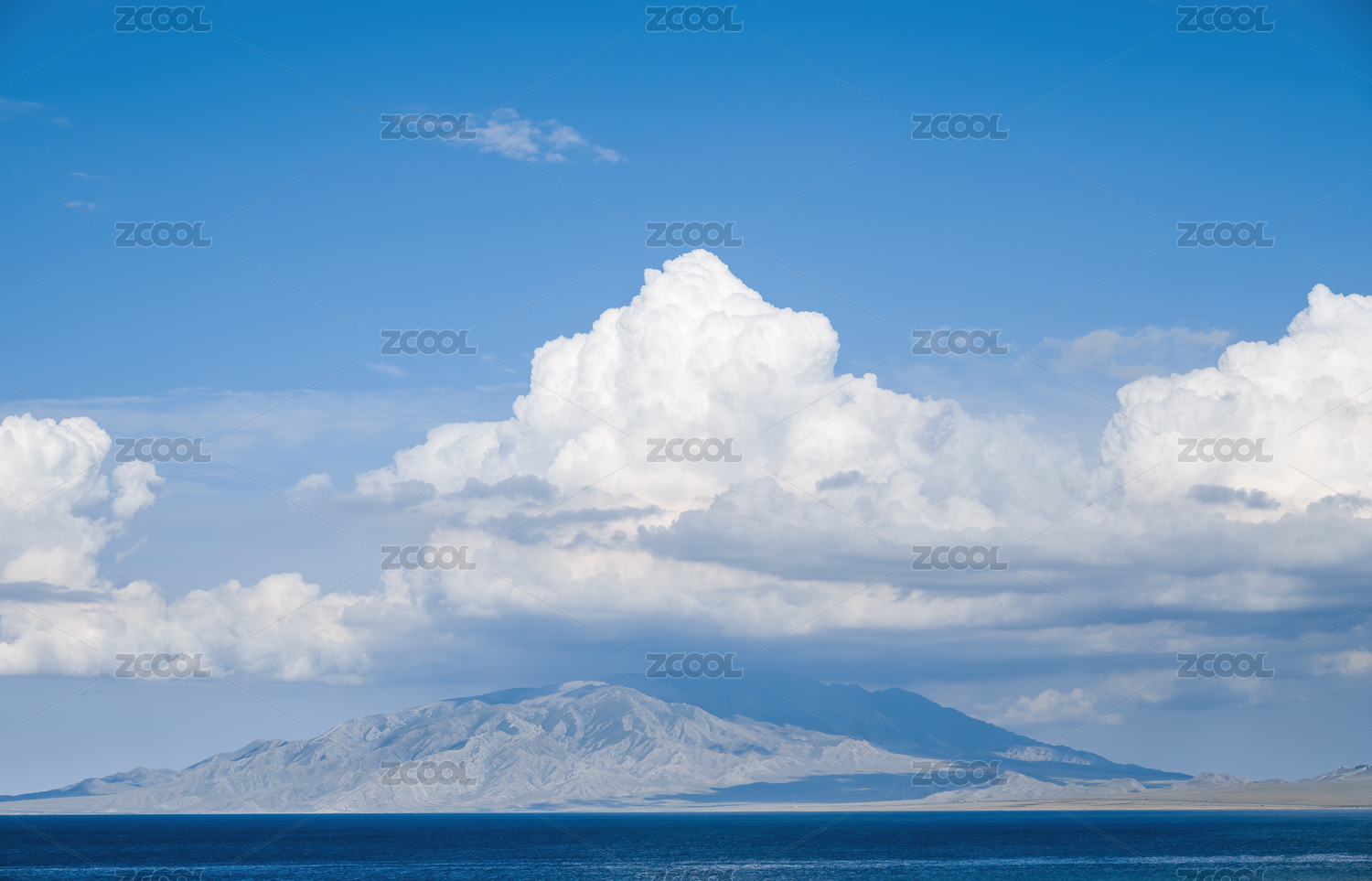 青海湖二郎剑景区蓝天白云湖波荡漾风景