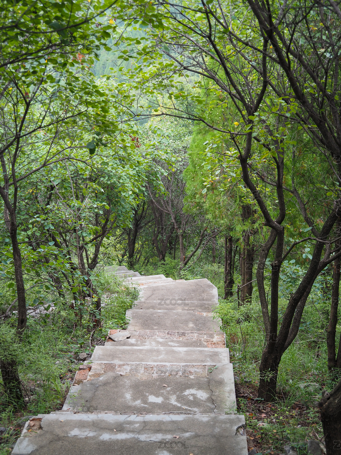 中国云南省昆明市西山风景区崎岖的石台阶路