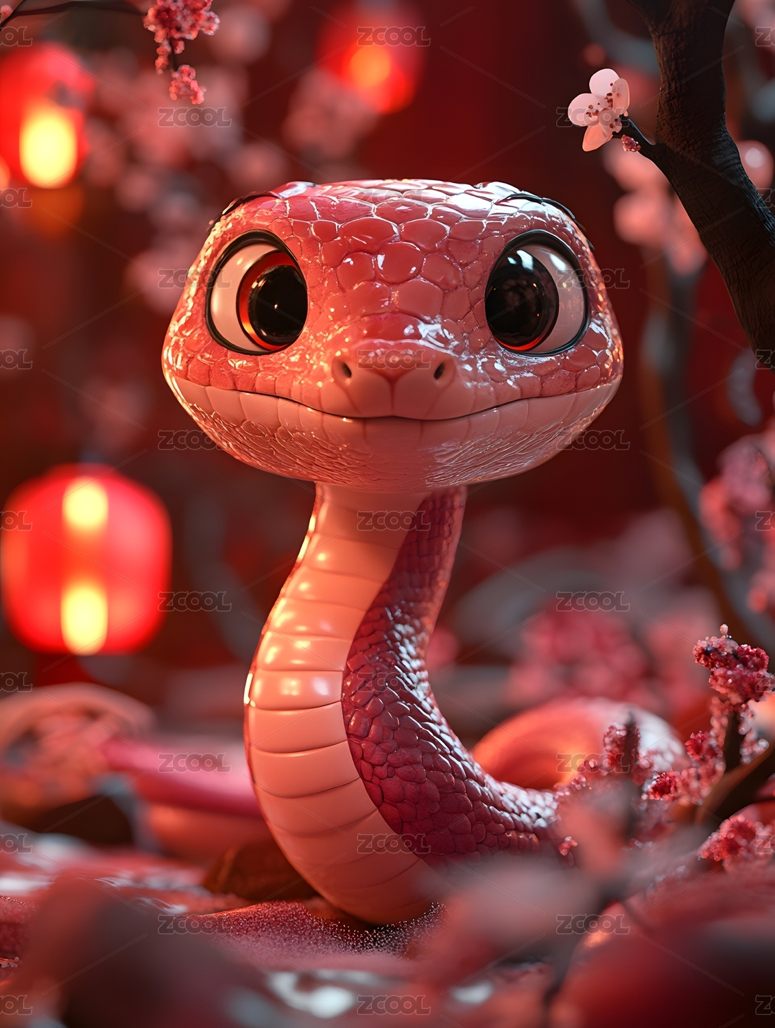 三维,立体,3D,渲染,插画,背景,壁纸,桃花,蛇,中国风