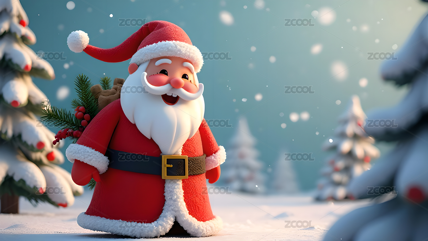 雪地里的圣诞老人3D立体素材