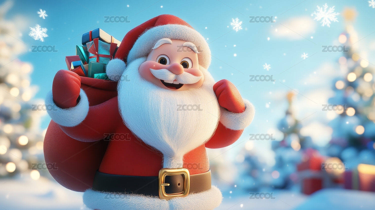 冬天3D圣诞节圣诞老老人礼物