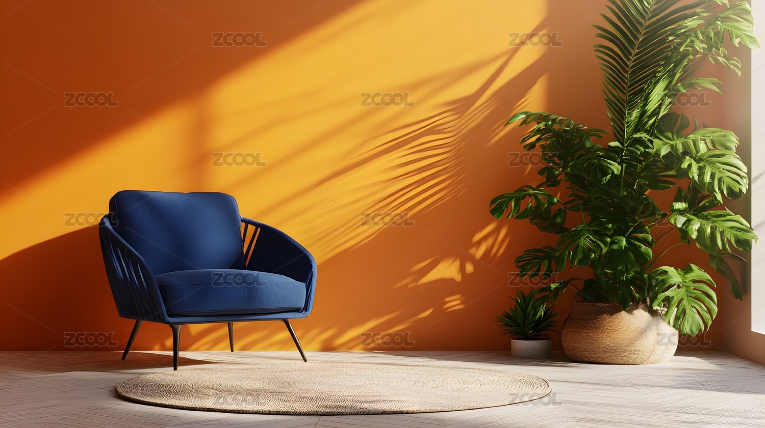 橙色椅子与绿植的室内角落