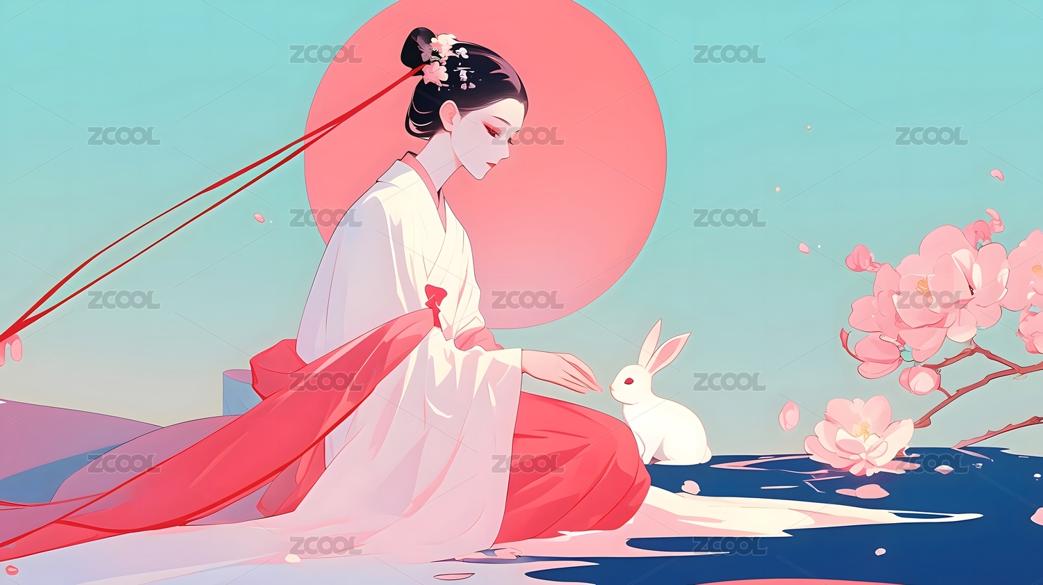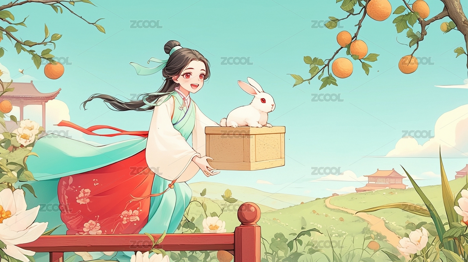 中秋嫦娥玉兔插画