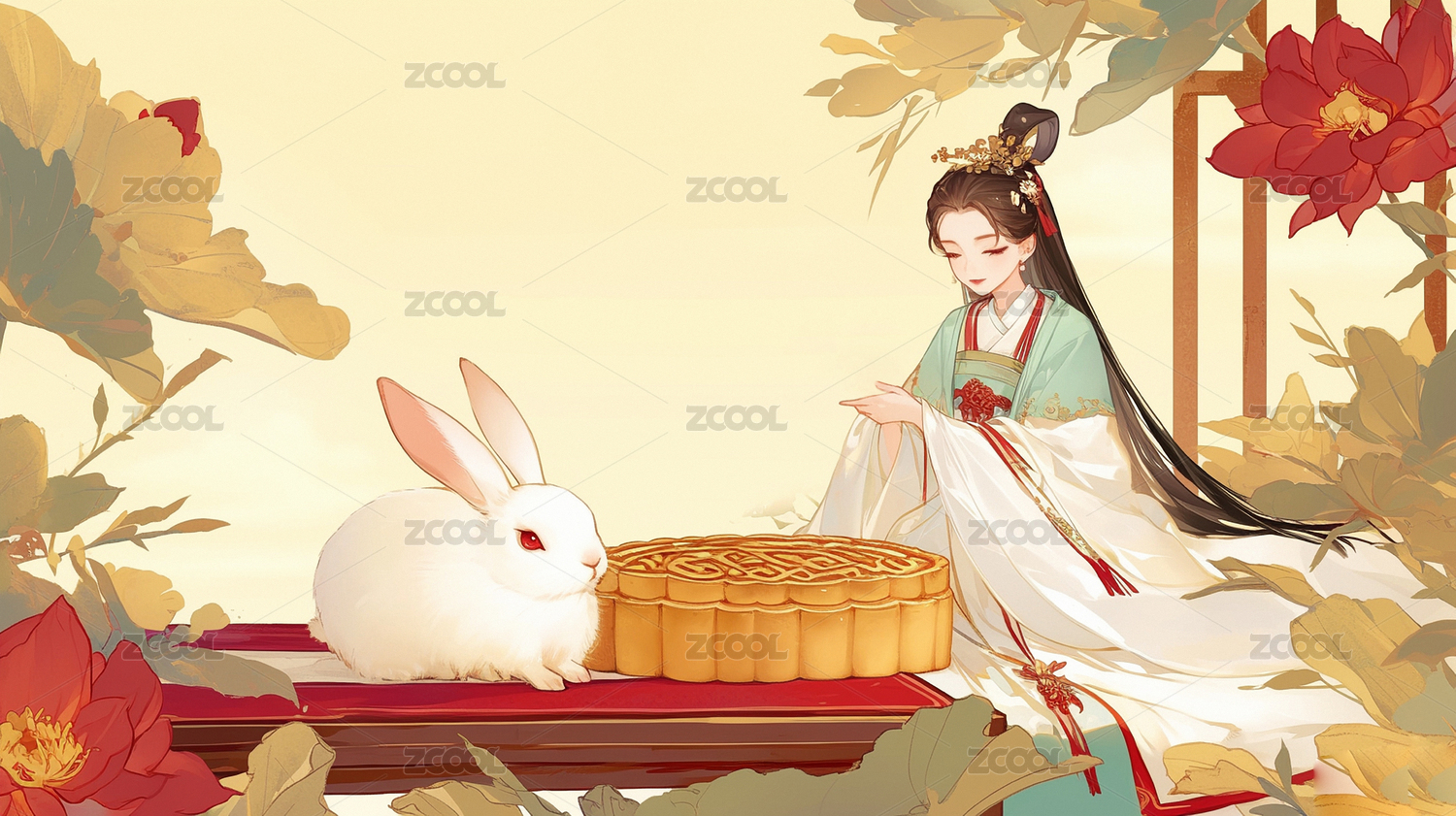 中秋节,国潮,插画,中国风,AIGCFG,写意,插图,中秋,月饼,嫦娥