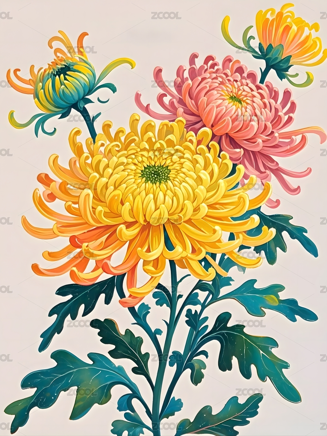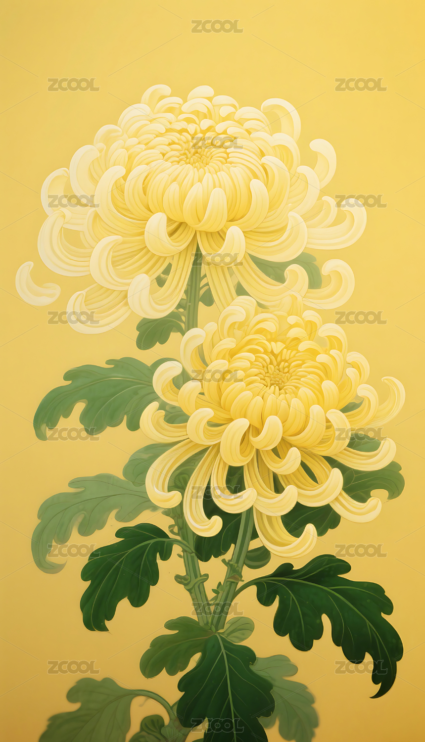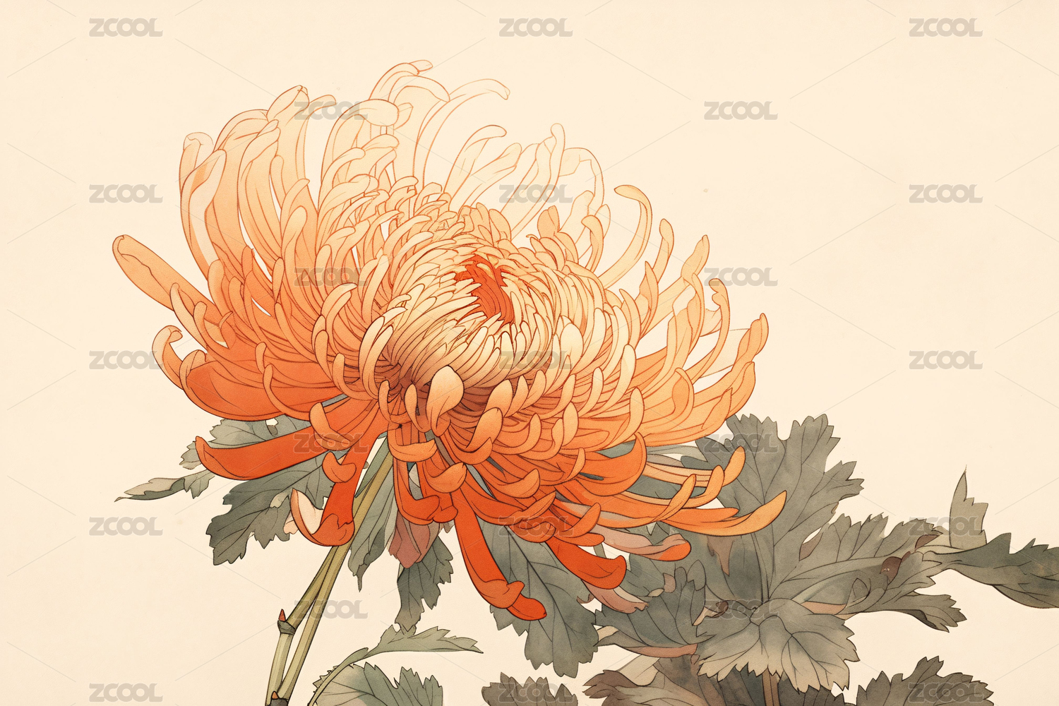 菊花特写复古浮世绘风格插画