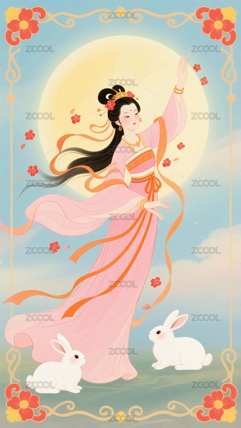 嫦娥和月亮玉兔桂花等竖版