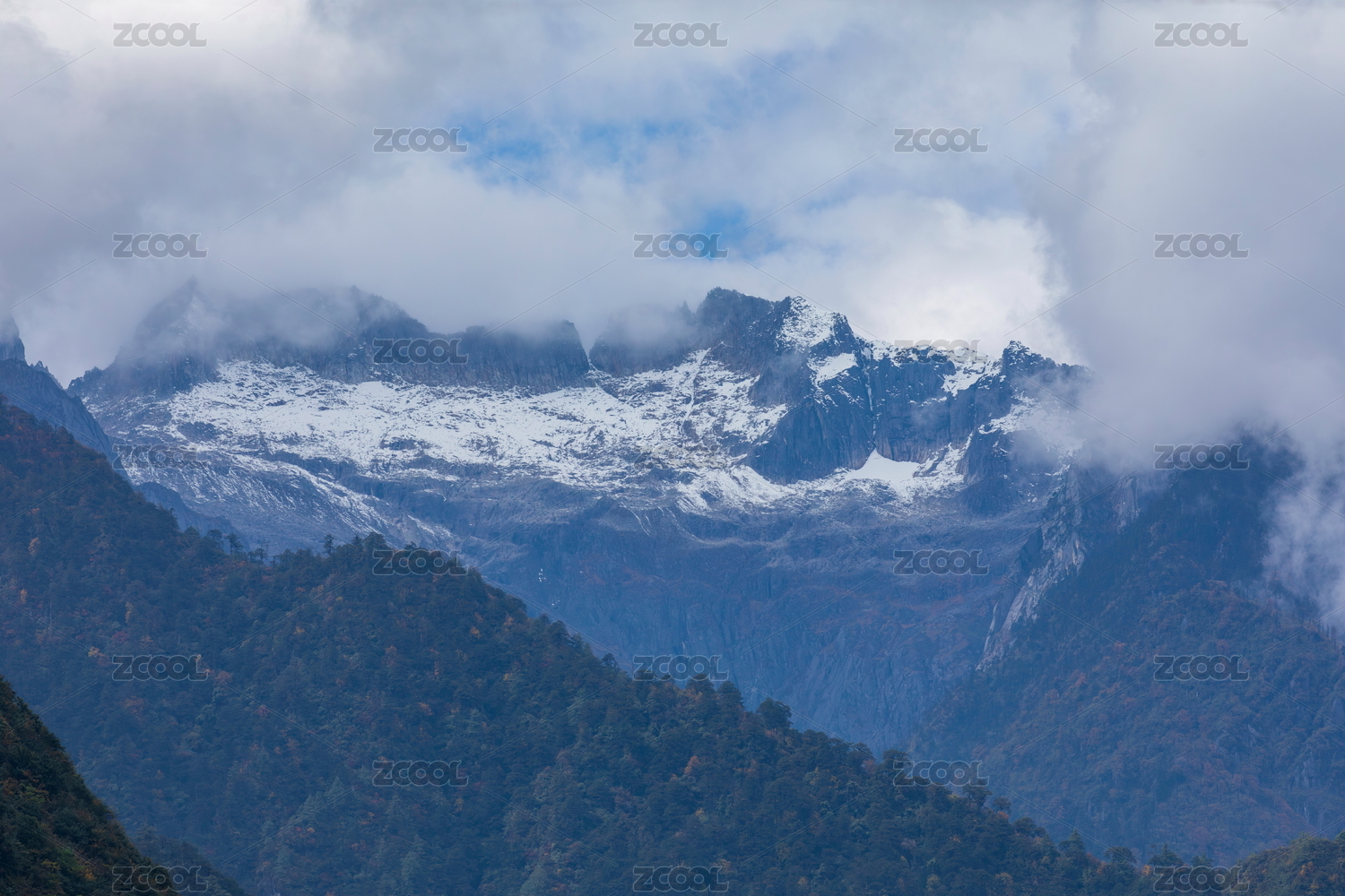 云雾缭绕的巍峨雪山