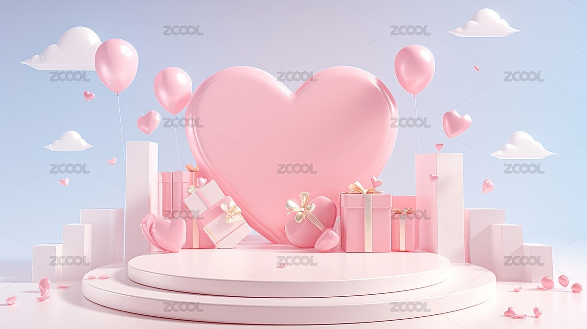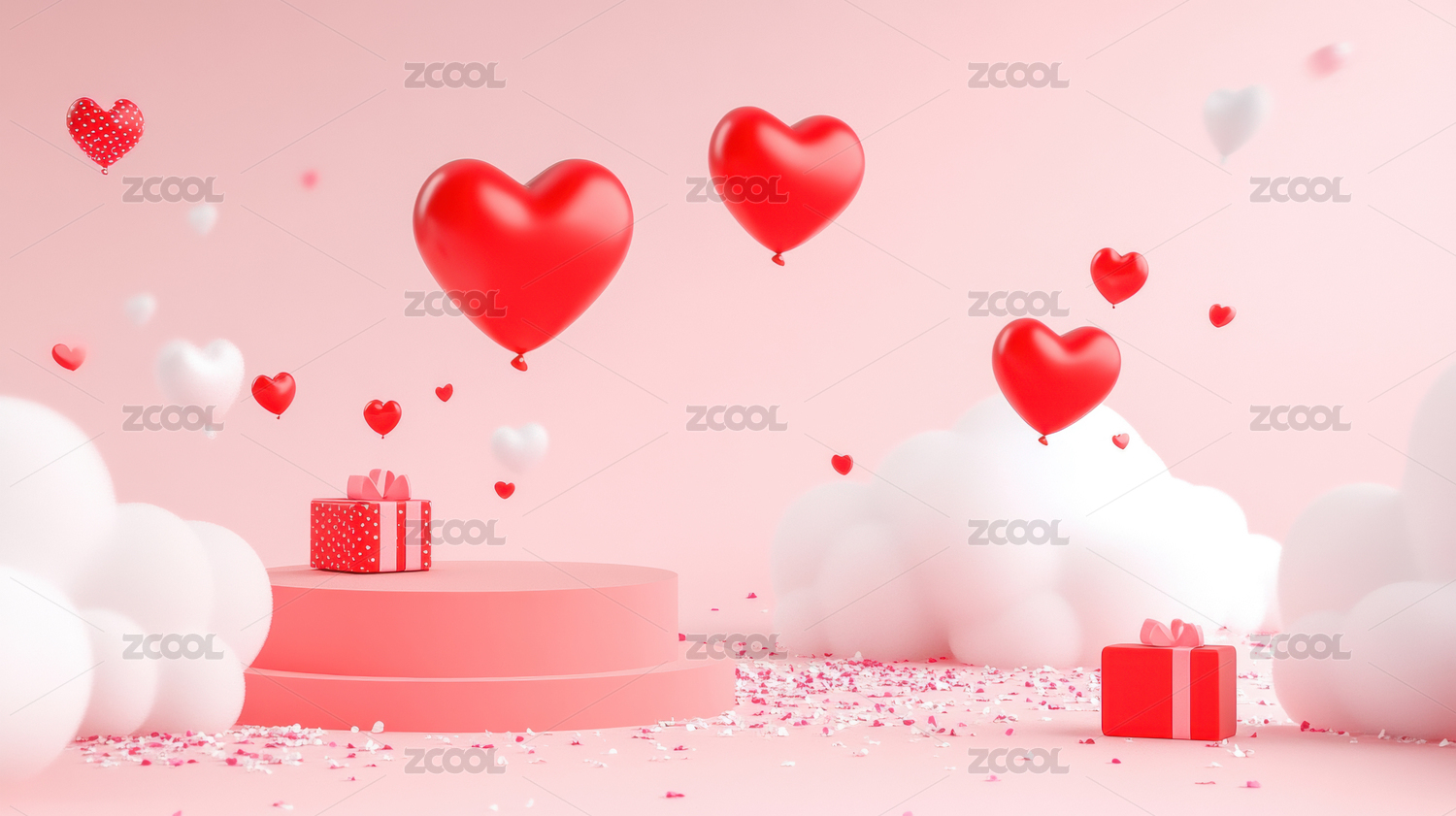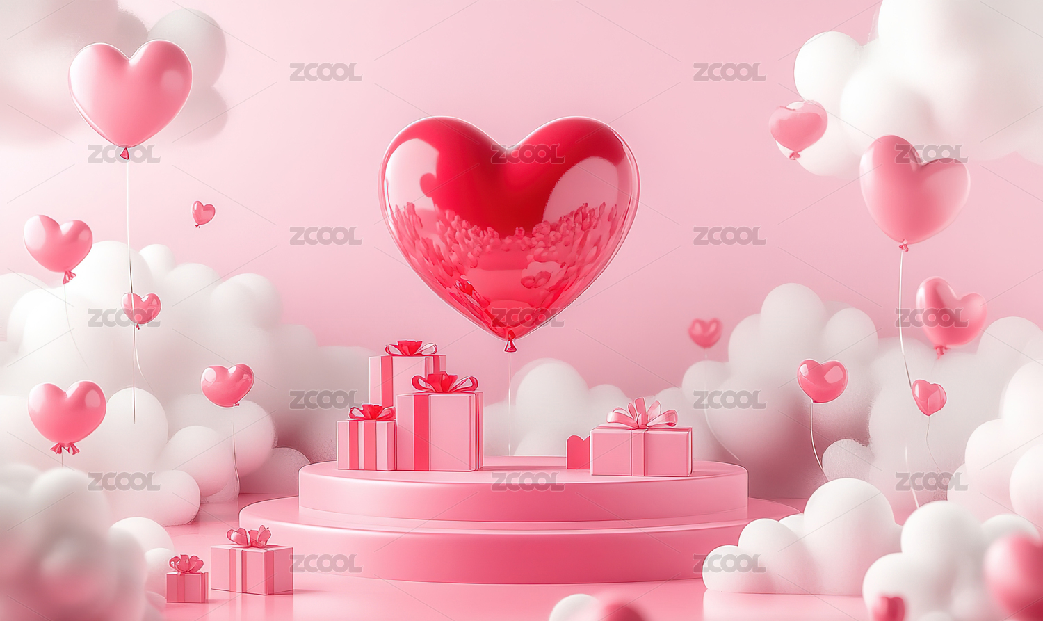 七夕情人节带气球的礼物盒展台爱情主题背景