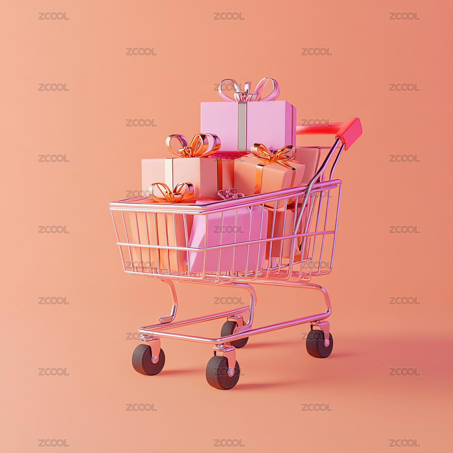购物车礼盒粉红色背景3D