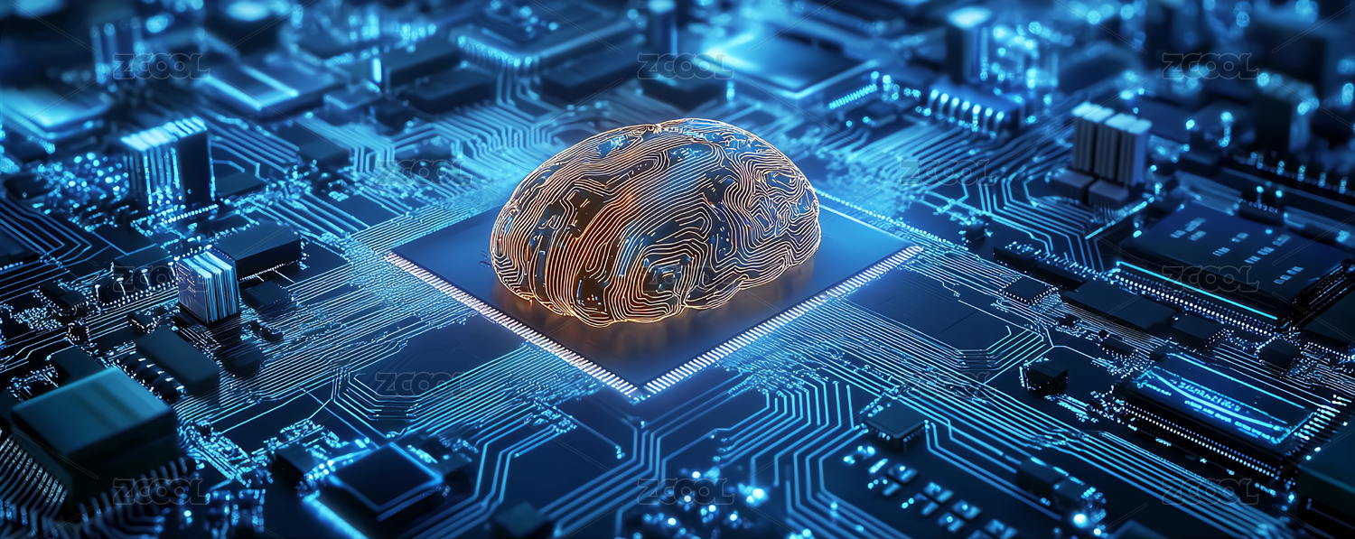 科技,芯片,蓝色,发光,互联网,3D,三维,AI,AIGC,金属