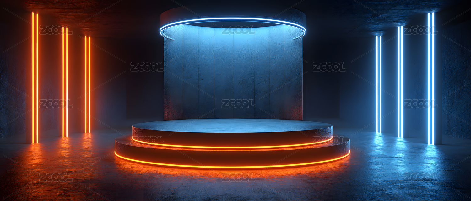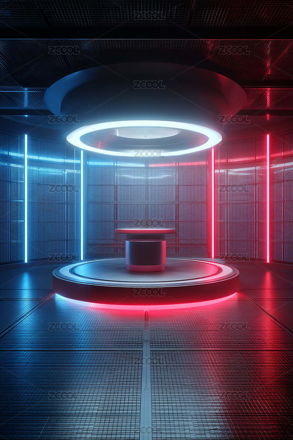 插画,3D,科幻,霓虹,灯光,赛博朋克,室内,背景,技术,未来