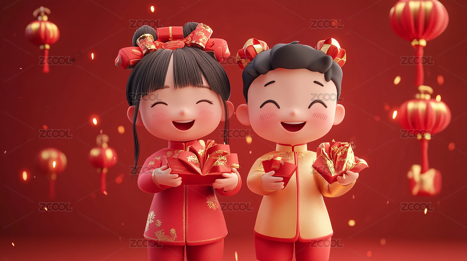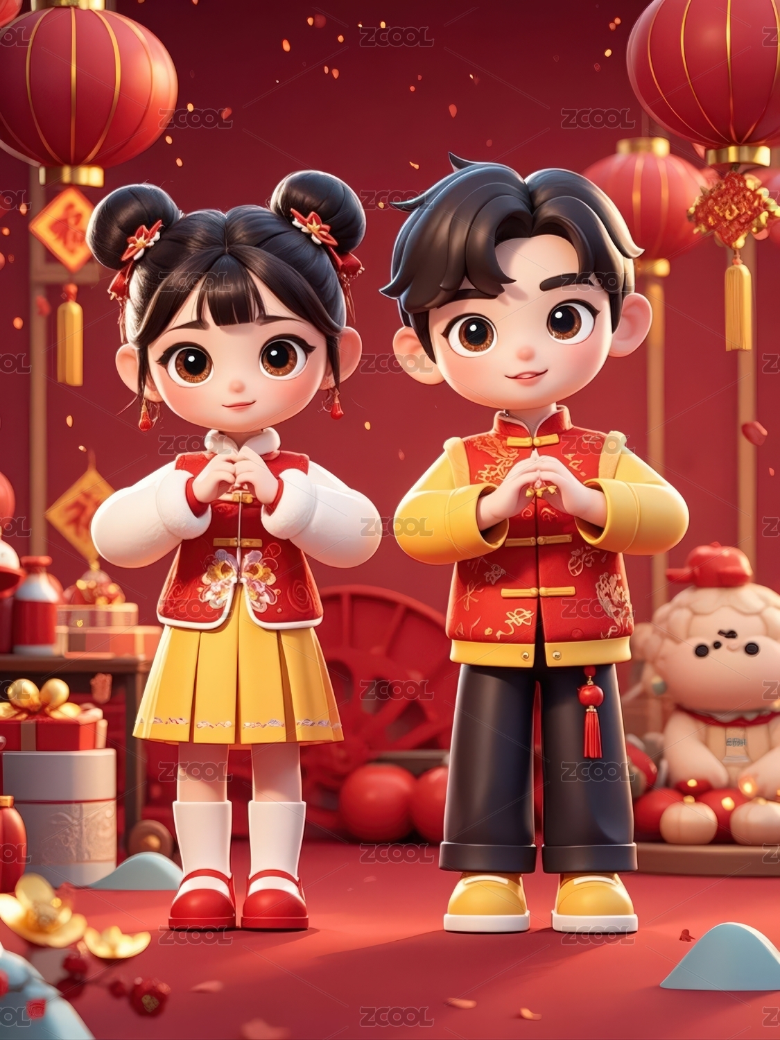 女孩, 红色, 喜庆, 中国风, 可爱, 新年, 吉祥, 节日, 庆祝, 春节
