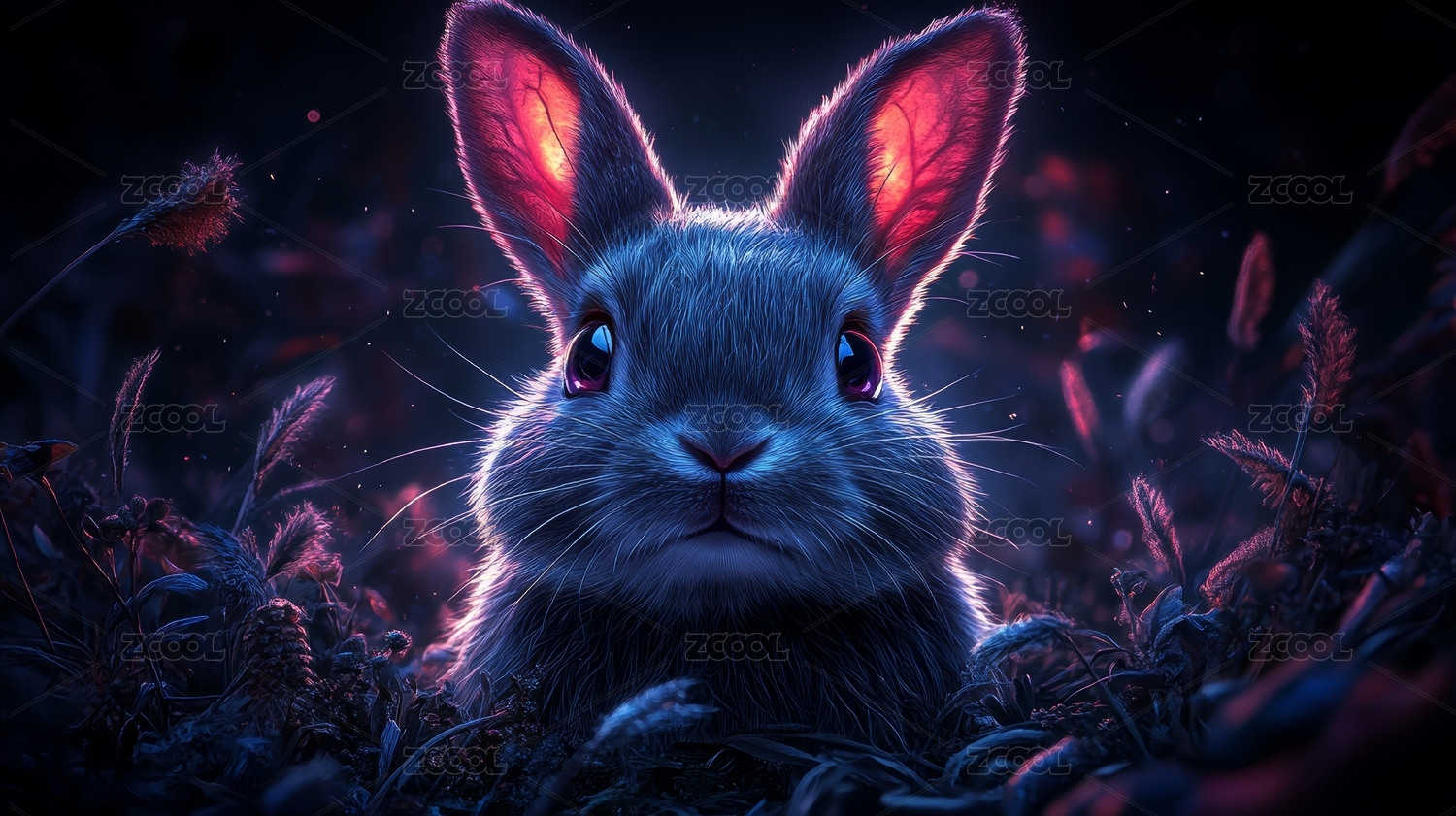 艺术, 自然, 动物, 梦幻, 唯美, 蓝色, 粉色,兔子, 兔子图片, 灰兔