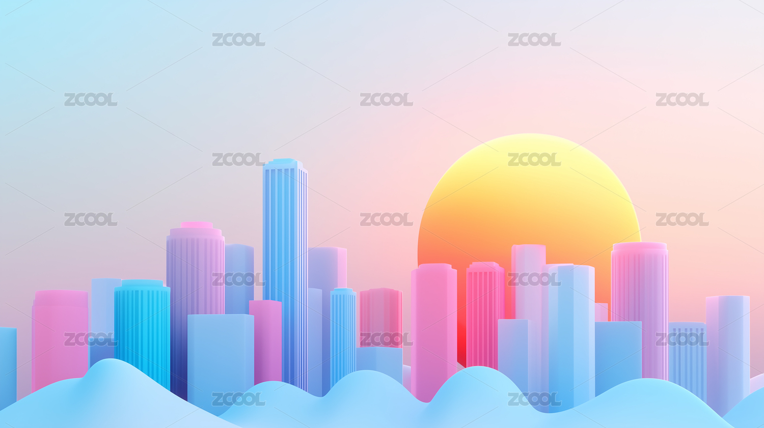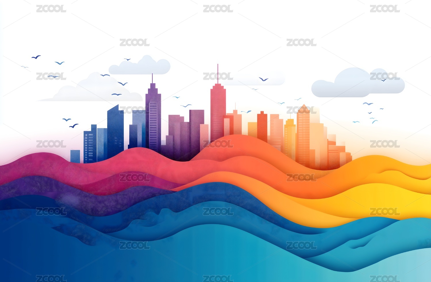 城市风光天际线与彩色背景