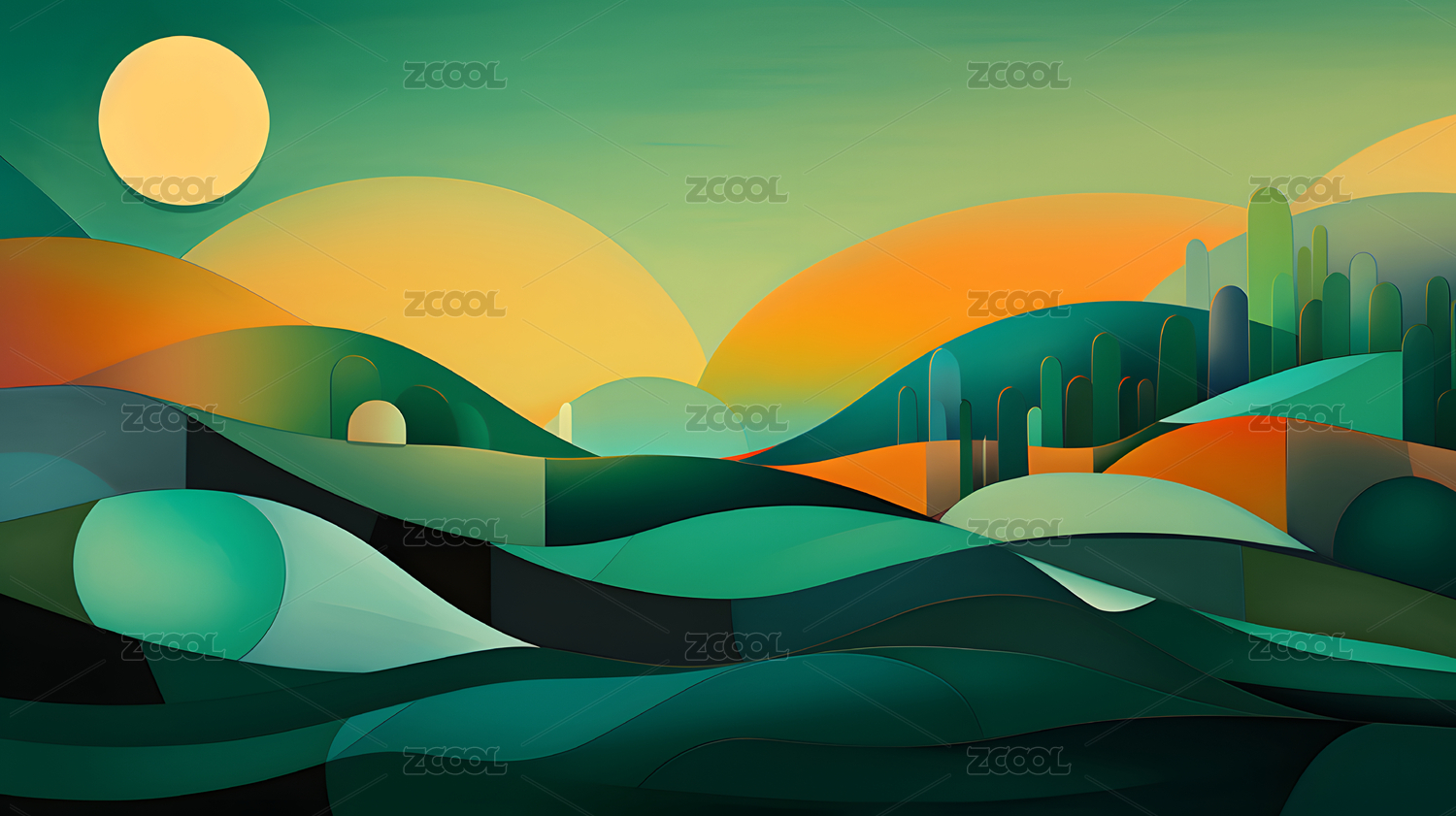 数码抽象绿色麦浪几何图案图形海报背景