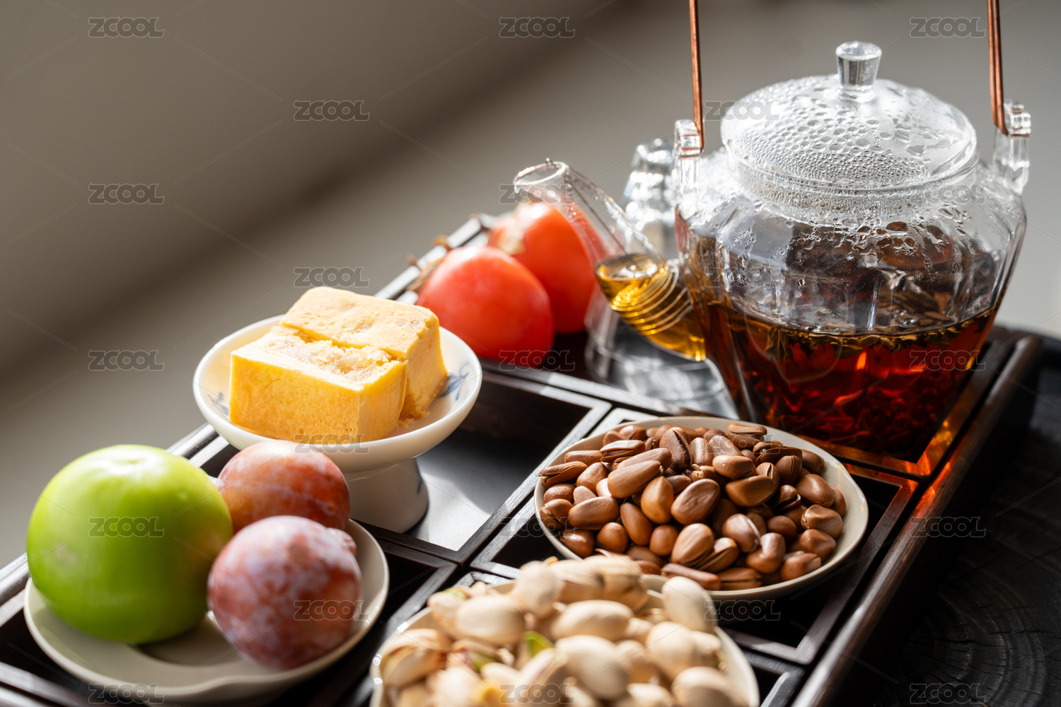 冬季,煮茶,温暖,温馨,倒茶,休闲食品,氛围,烤火,点心,小吃