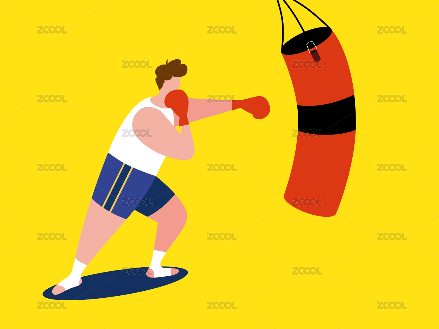 比赛竞技跳远运动员减肥卡通插画矢量图