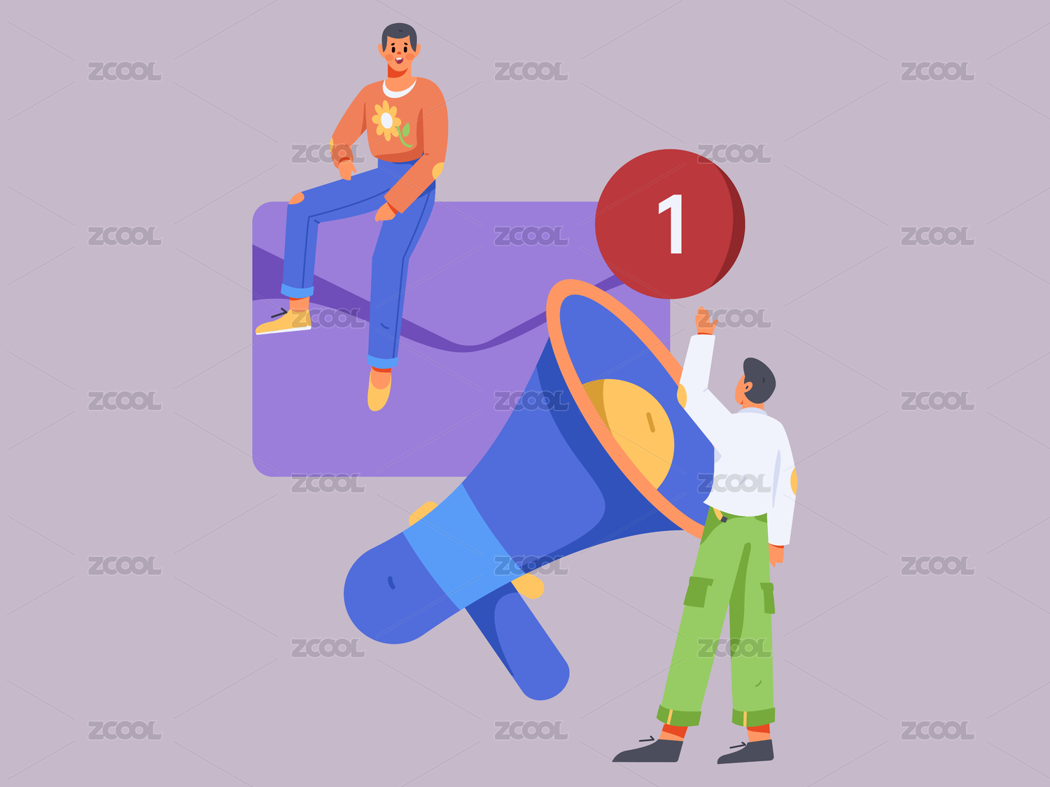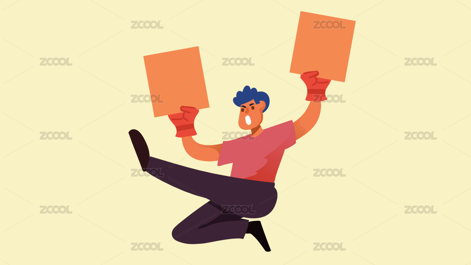 卡通手绘人物跳跃举牌促销购物推广插画素材