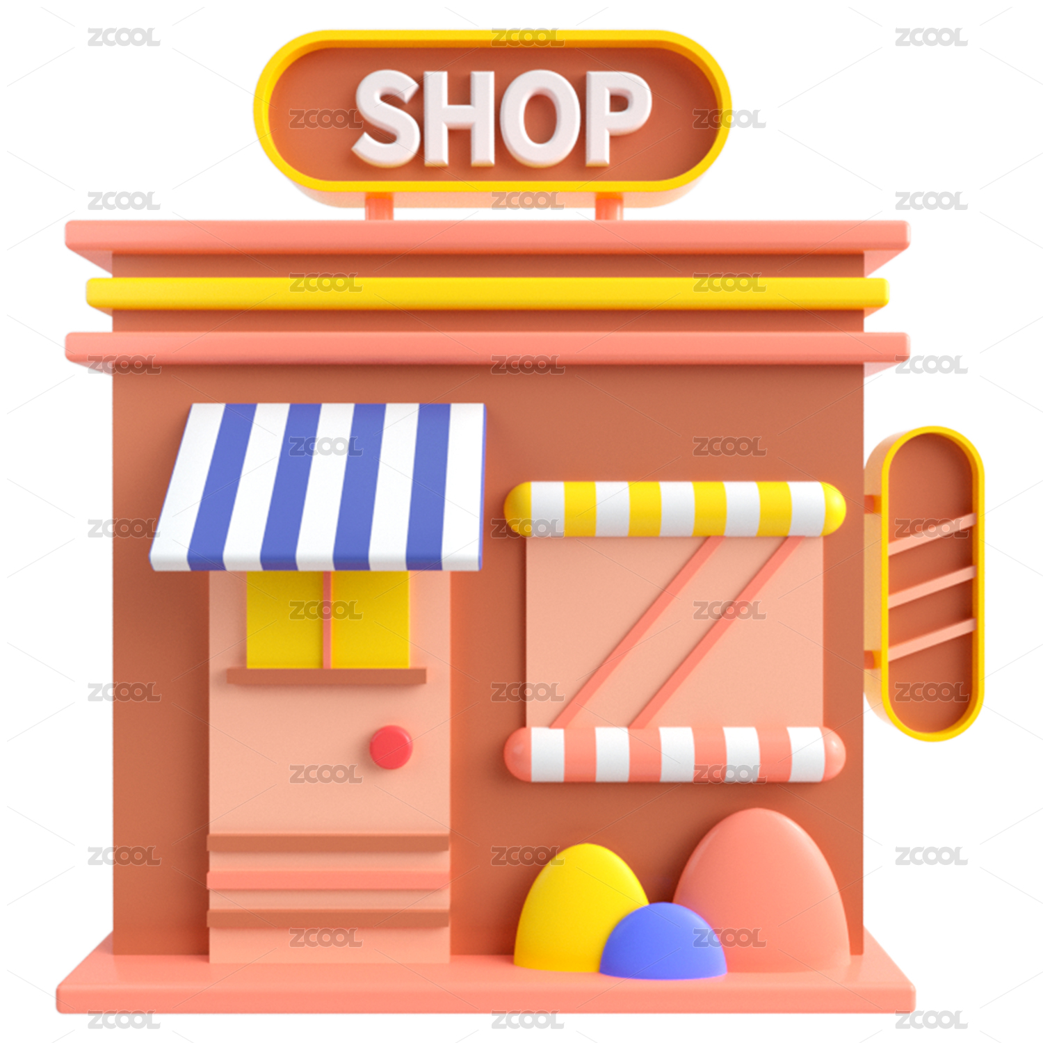 插画写实房子扁平啤酒植物路边台阶蓝色门口