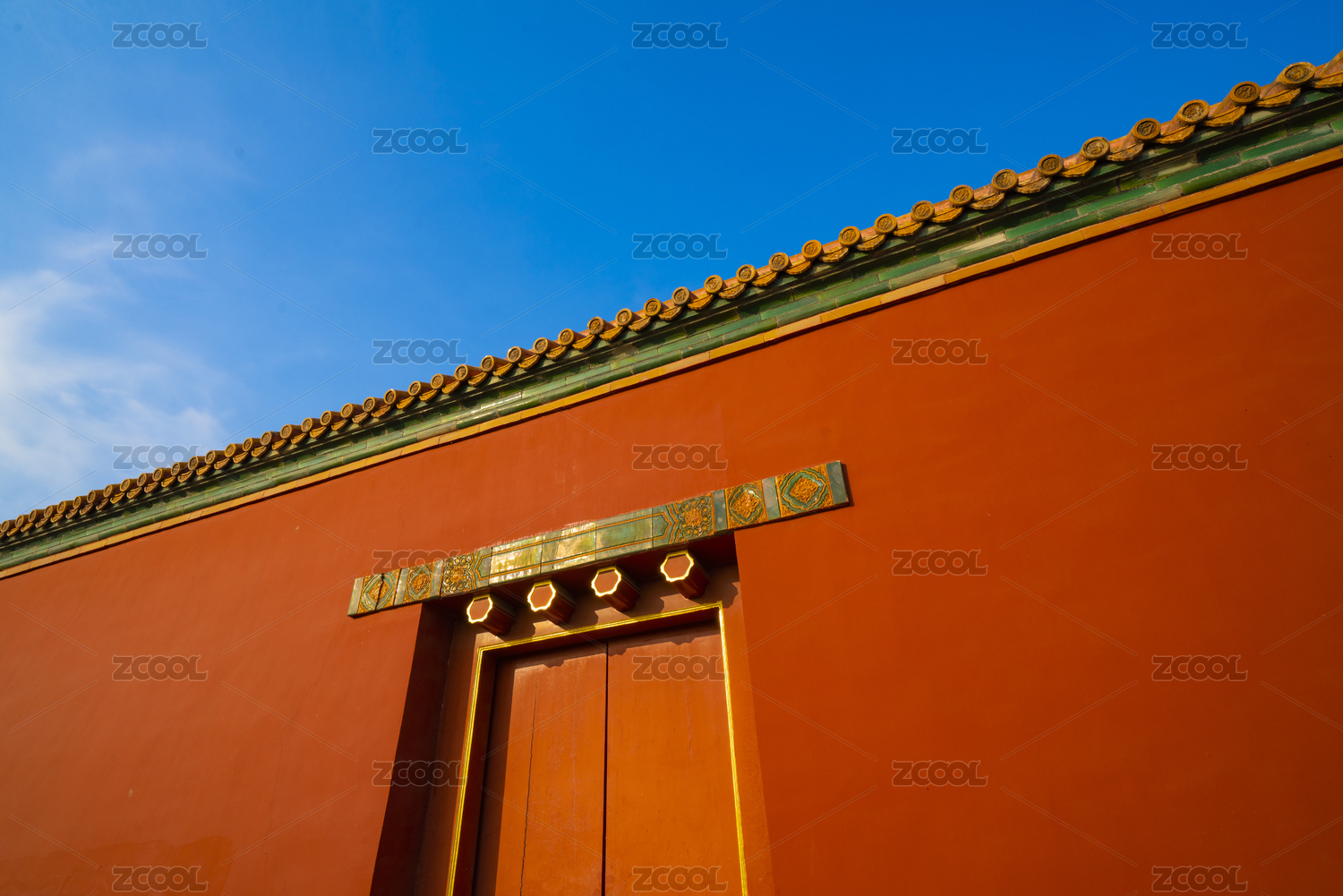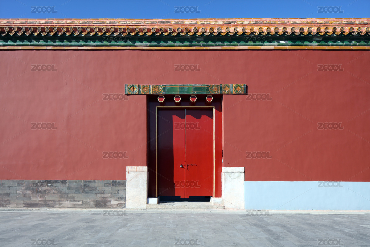 北京故宫博物馆的红墙绿瓦、门头和红门。