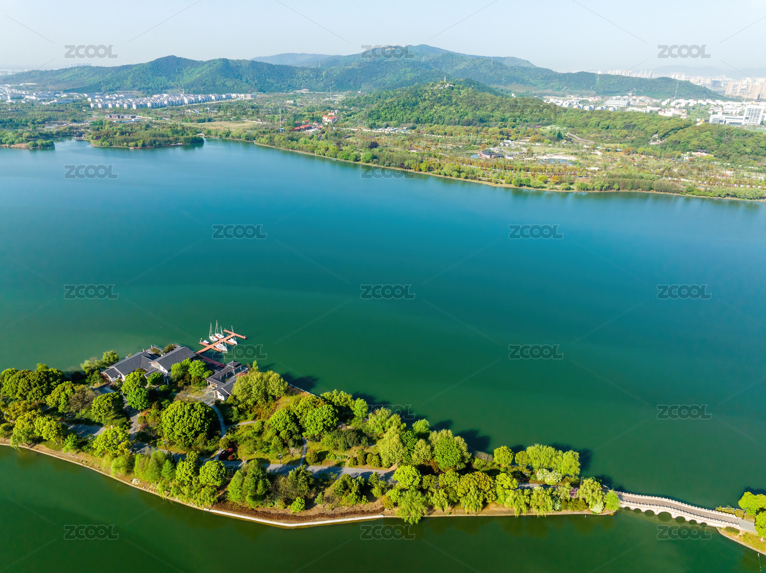 无锡市太湖旅游区渤公岛生态园航拍风光