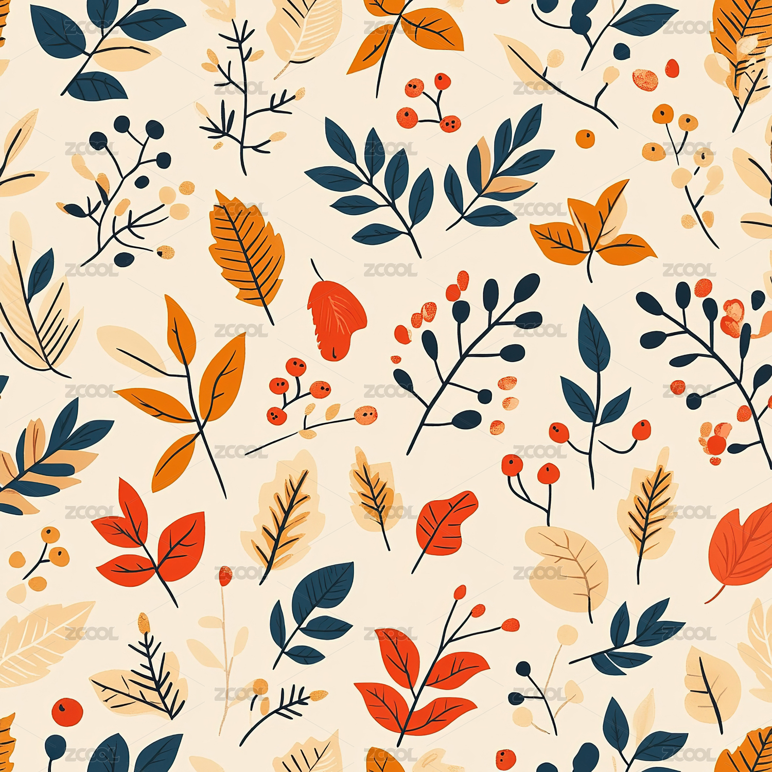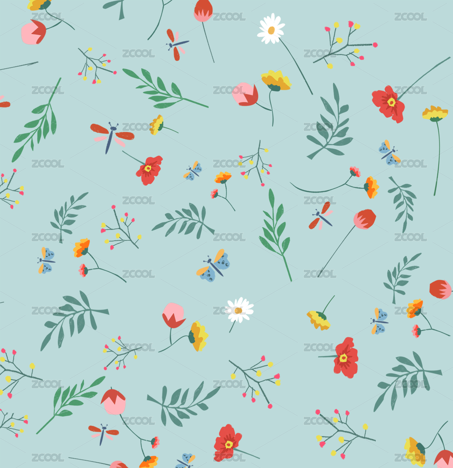 北欧风清新ins玫瑰花卉叶子印花无缝背景