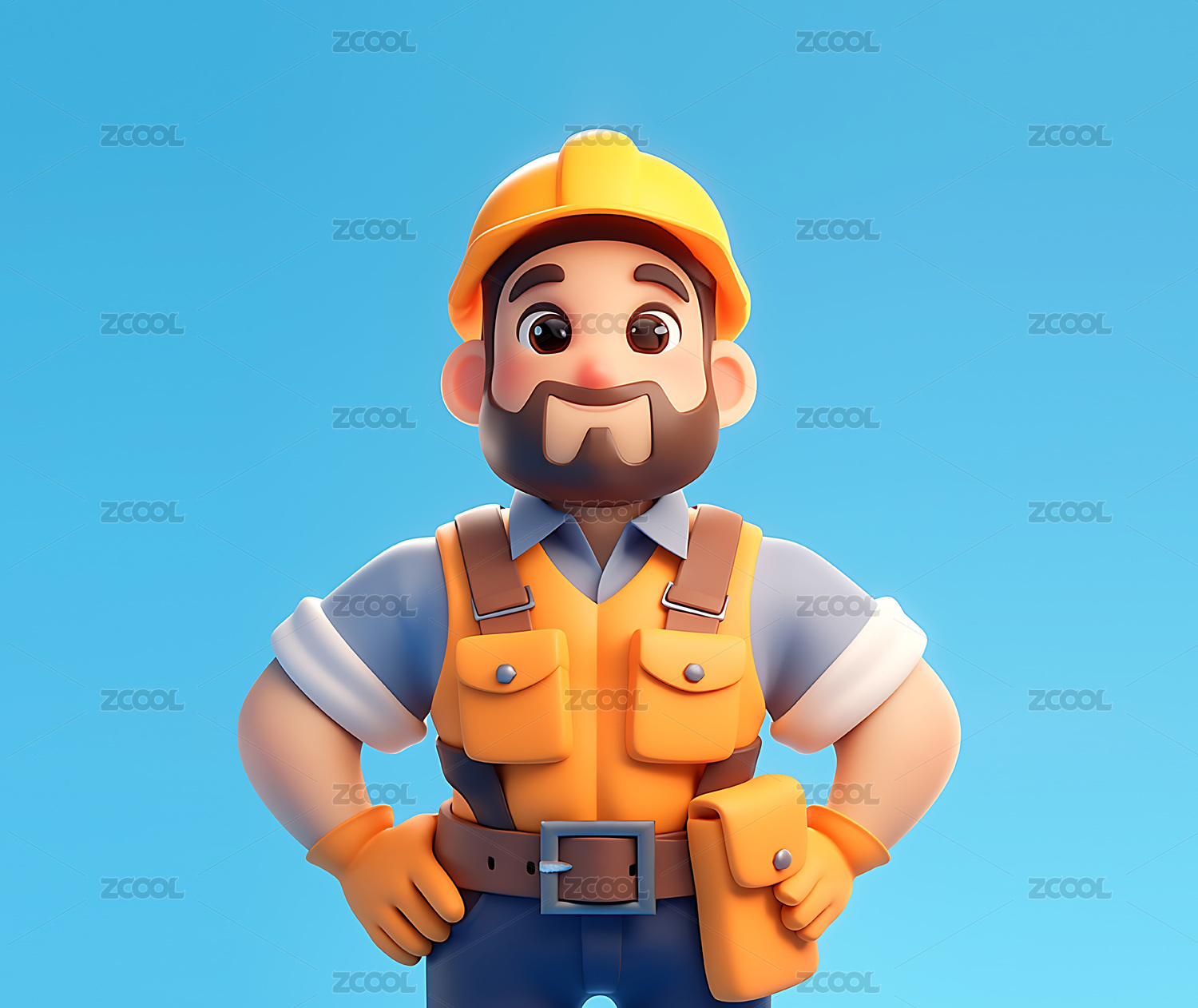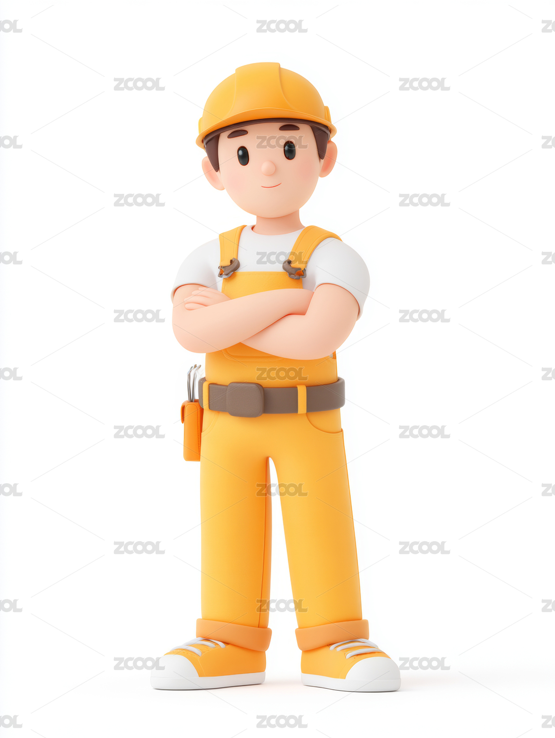 卡通,人物,3D,男,人,微笑,男人,站,职业,工作