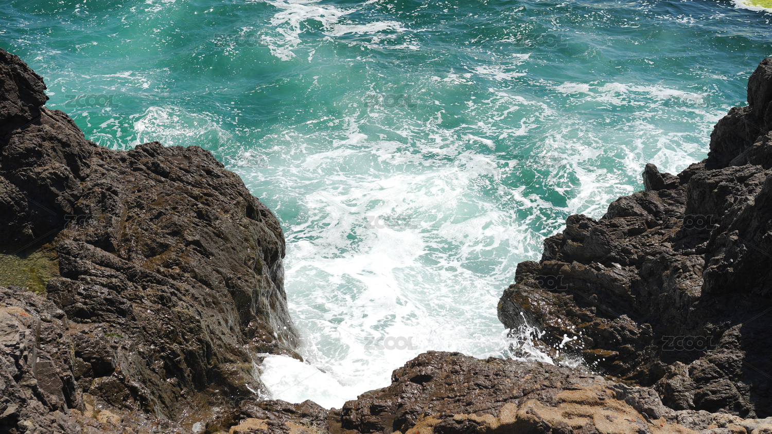 海浪白色浪花拍打礁石