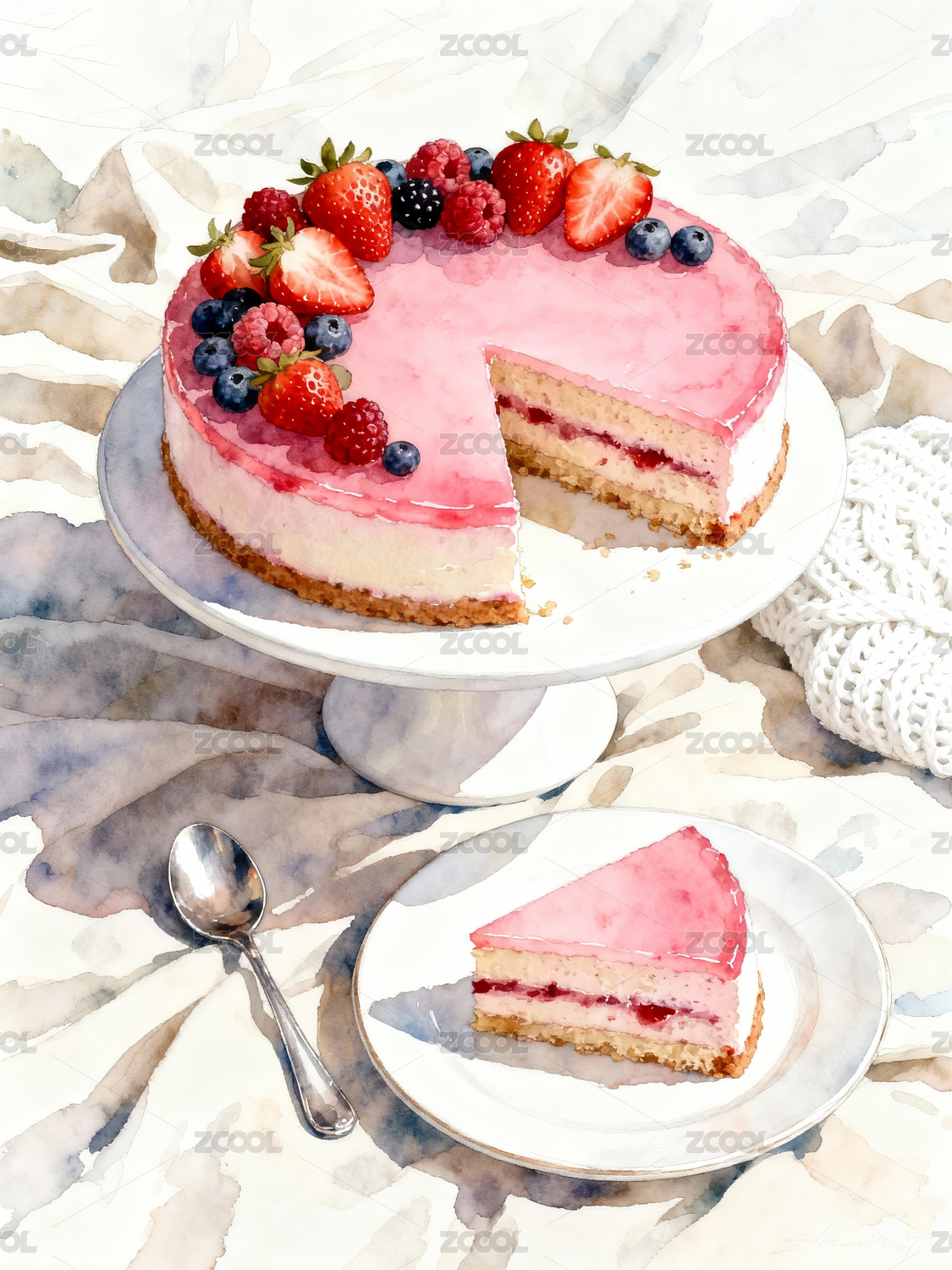 果冻布丁蛋糕草莓奶油阳光
