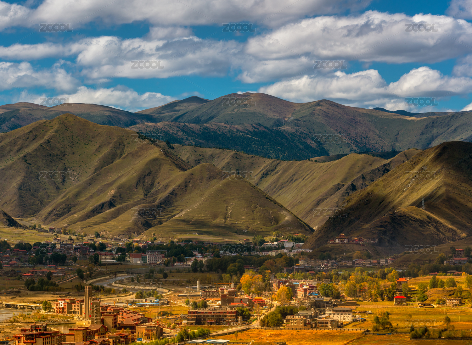 中国四川甘孜贡嘎山下的新都桥镇秋季风光