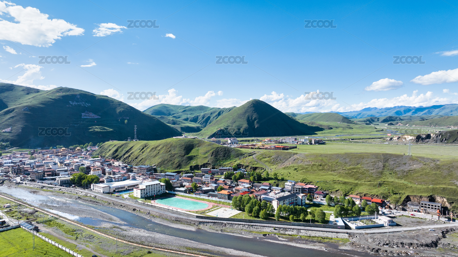 中国四川甘孜藏族自治州道孚县龙灯草原航拍