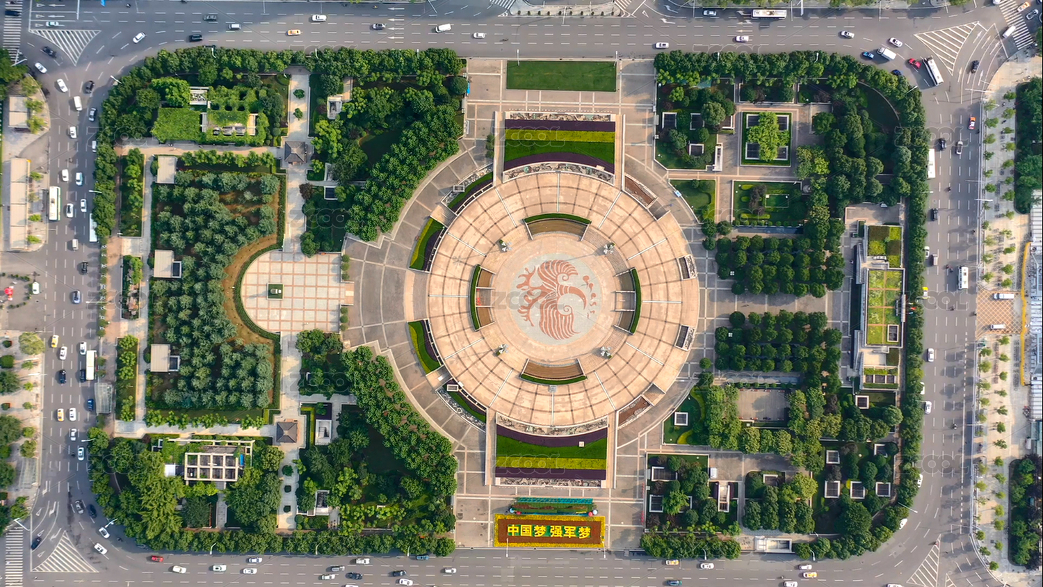 航拍湖北省武汉市光谷广场城市道路交通环岛