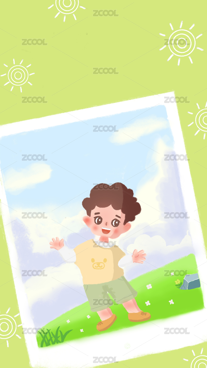 矢量插画在草地上玩耍的小孩男孩